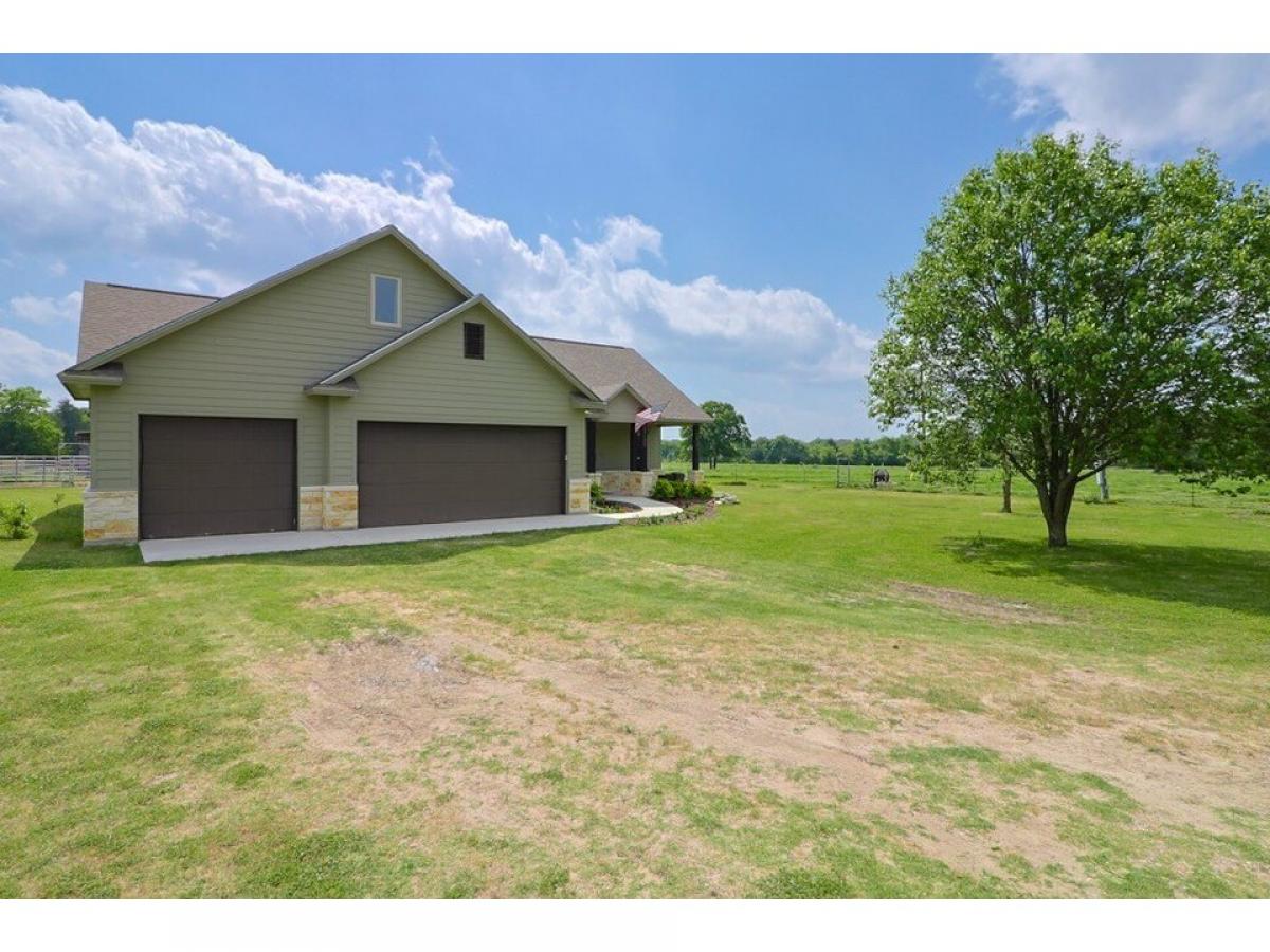 Welcome to 5443 Harris Tap Lane! Nestled on 10 Ag Exempt acres, this property offers the serenity and luxury of a country retreat. With a split floor plan and an insulated 8-foot iron door to greet you, this 2440 sq. ft. home has 3 bedrooms and 2.5 baths. Upstairs you will find a 500 sq. ft. bonus room over the 3-car garage that can be used as an extra bedroom, play or game room. The home features granite countertops in the kitchen, quartz countertops in the bathrooms, upgraded cabinets, Austin stone fireplace, and high-end vinyl plank flooring. The laundry room and a separate pantry are generously sized. Enjoy a spacious primary bath with walk in shower, soaking tub and separate sinks. The property is fenced with a cattle pen/chute, horse pens, separate pastures, barn with water/electric, and a pond. High Speed Fiber Internet, public water (No Mud Tax) and tankless water heater. Perfect for those seeking luxury living in the countryside of Madison County yet within 30 minutes to BCS.