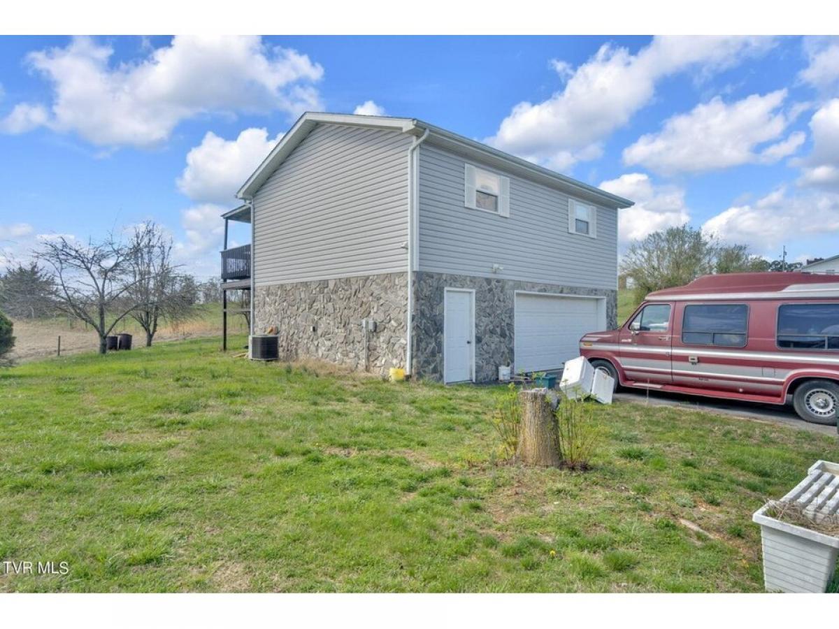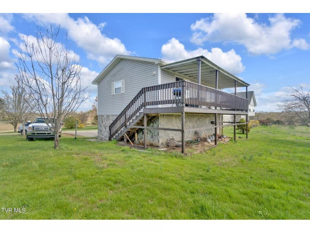 Nestled in the foothills of the beautiful East Tennessee Mountain, this 25 acre farm sits on gently rolling land with 2 ponds and fenced pastures. The primary house is situated to take advantage of the beautiful landscape views of the property. The primary house has so much to offer! The upper story features a great room flooded with natural light and is anchored by a stone fireplace. Hardwood floors flow throughout this level. The great room is open to the kitchen and breakfast area. Plenty of room for you and your guests in this space. Step through the french doors and take in the views from the 3 season sun-room. The sunroom overlooks one of the ponds and the fenced in back yard. The main living space divides that bedrooms with the primary ensuite with dedicated office on one side and 2 bedrooms, hall bath and sitting area on the other. The lower level has a spacious multi-purpose room currently being used as a game space and den. A wood burning fireplace in this area can keep you warm and cozy on those cold winter nights. Two additional bedrooms , combination laundry/full bath and a 2 car garage make up the lower level. Outdoor space is abundant in the primary space with a patio on the lower level and 44-foot-long deck on the upper level. A separate 2 car garage with guest/ in-law suite or housing for your farm hand is just steps away from the primary house. The 720 sf in-law suite has a full bath, separate laundry area, bedroom and kitchen living combination. A back deck overlooking a pond is off the main living space. A 30x60 farm shop with storage area and workshop is located just beyond the fenced in back yard. The workshop has a separate storage area that is stubbed out to add a half bath. Just outside the farm shop is a barn area with stalls for animals. An implement shed is just beyond the barn area. An additional shed is out near the back pond. Fencing in along the back perimeter of the property and divides the back acreage into separate fields.