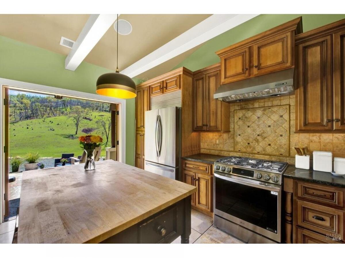 A Home Designed for Self-Sufficient Living! Experience unmatched privacy and modern sustainability in this 1,913 SF, 3 bedroom/2 bath, single-story ranch, situated on 20 acres in the Napa Valley. Custom built in 2005, this meticulously crafted retreat blends old-world charm with cutting-edge technology, offering the flexibility to live on or off the grid. The spacious kitchen features Vermont soapstone countertops, maple cabinetry, a butcher block island, and new LG gas range perfect for cooking and entertaining. The primary suite offers a custom box beam wood ceiling, clawfoot tub, restored barnwood vanity, and French doors leading to a covered patio with serene pasture views. Sustainable systems include a 28-panel solar array with 3 Tesla power walls, a 14kW Kohler backup generator, Tesla fast EV charger, and a spring-fed water system with whole-house filtration and 5,000 gallons of storage. Additional highlights include dual-zone HVAC, a Rumford wood-burning fireplace, extensive hardscaping for defensible space, fenced garden area and a dog run. Rolling hills, a seasonal stream, fenced pastures, a chicken coop/barn and an animal shed make this property perfect for horses and livestock. Embrace wine country living with modern comforts in this exceptional Napa Valley retreat.