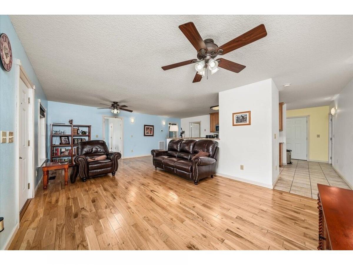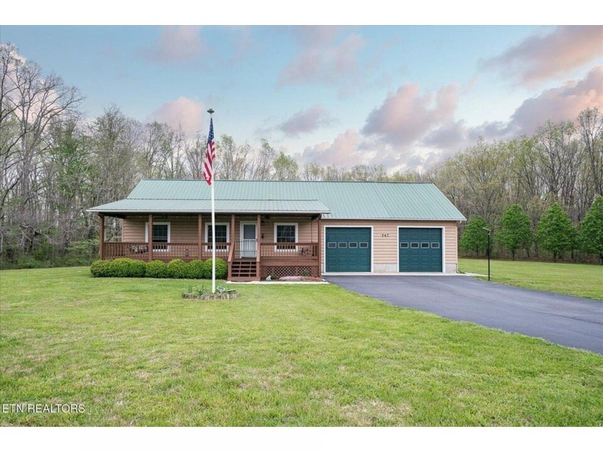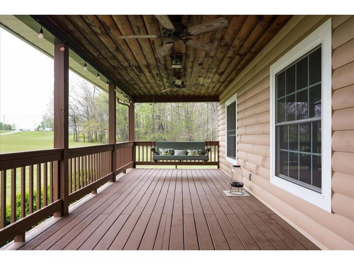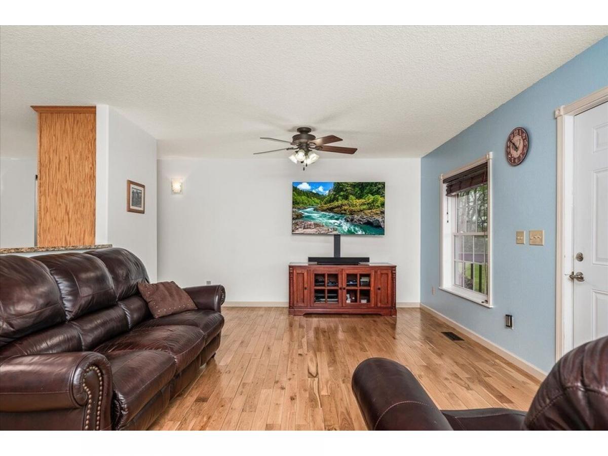 Tucked away on 5.7 private acres, this cozy 2-bedroom, 2-bath cabin is the perfect blend of comfort and functionality. The kitchen boasts maple cabinets, stainless steel appliances with a brand new microwave. all complimented by granite countertops and a convenient Lazy Susan. The warmth of hickory flooring flows throughout, with plush carpeting in both bedrooms for added comfort. The master features a walk-in closet, and both bathrooms are outfitted with hard surface counters. There are fans in each bedroom and two in the great room. Upstairs presents an exciting opportunity - it can easily be converted into a third bedroom and storage is abundant ensuring everything has its place. Freshly painted and move-in ready, this cabin has a fenced in area for your fur babies, a 3 bay pole barn with 220-volt wiring plus RV hookups, a propane tank that is owned amp; stays with the property, a flagpole out front and a lone paved driveway.