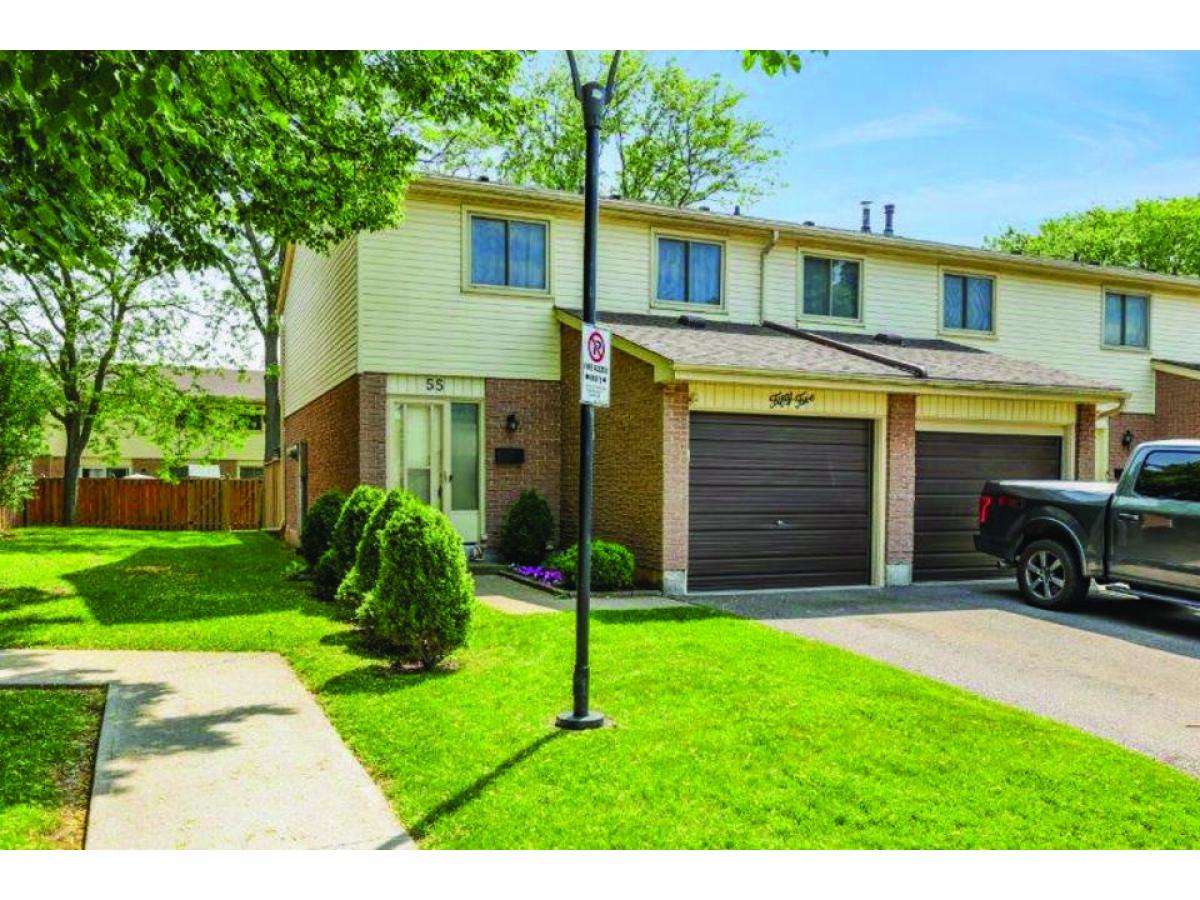 Unit 55 at 150 Gateshead Crescent in Stoney Creek is an UPDATED and TASTEFULLY FINISHED from TOP-to-BOTTOM condo townhome END UNIT in a highly sought-after neighbourhood. Walking distance to Cherry Heights Park, schools, grocery shopping, and more. OPEN CONCEPT main floor is bright and spacious with gleaming hardwood floors throughout, a 2-pc bath, and living room and dining room with WALK OUT through sliding doors to private and fully fenced back yard with lovely patio and gazebo. UPGRADED kitchen offers GRANITE counters, breakfast bar, stainless steel appliances, and pantry. Upper level features a primary bedroom with WALK-IN CLOSET, plus two more generously sized bedrooms, and a 4-pc bath. FINISHED LOWER LEVEL provides a long recreation room with additional 4-pc bathroom, and laundry room. Single drive leads to attached garage with inside entry to the kitchen. Water softener and reverse osmosis system, visitor parking. Quick drive to Eastgate Square & QEW.