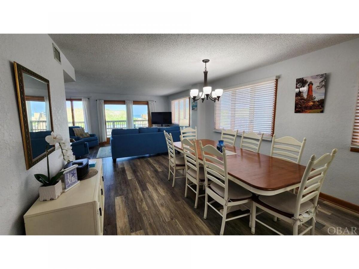 This stunning condo has been COMPLETELY renovated with thought and style. Luxury vinyl plank runs seamlessly through the entire property, and matching granite counters with custom cabinetry have been installed in kitchen, dry bar and all three baths. Attractive furnishings and decor exude Outer Banks charm, with wall art depicting local scenery. The ample kitchen features stainless appliances and under-cabinet and toe kick LED lighting. The deep sink includes dish dryer, colander, and cutting board systems. The chef will delight in the well-stocked kitchen also. Step out to the wide oceanside deck with quality furnishings and a great view of the pool and dunes amp; sea beyond. The primary suite features a king sized bed with french doors and curtains, but just imagine waking to first morning light over the dunes. The ample bath provides a walk-in shower and oversized jet tub to relax at day#039;s end. Attractive granite counters feature dual sinks with waterfall faucets. On the west side of the home lies a a second en suite bedroom featuring a queen bed, tub and walk-in shower, while the bunk room has easy access to the hall bath. Both bedrooms provide access to a west-side deck perfect for enjoying sunset views. This unit is a proven rental producer with many repeat customers. Owners can stow personal items in interior locked closets and a ground level lock up for beach supplies. Heron Cove is a highly sought-after development with masonry construction, commercial elevator, large pool and substantial vegetated dunes. The HOA covers internet, cable, and water, so you only pay for power. This unit is turn-key READY with lots of upgrades.