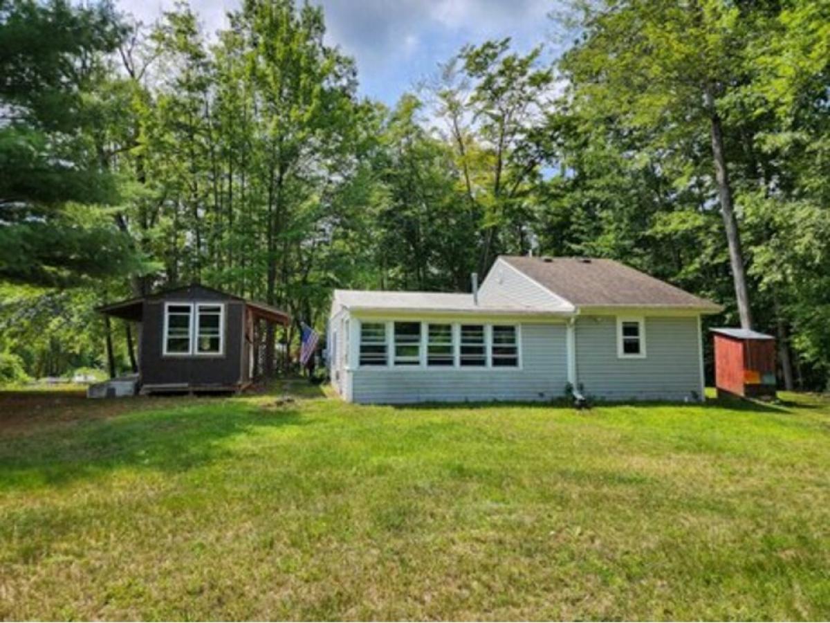 Charming, immaculate, and freshly painted, this 2-bedroom (split by a curtain), 1-bath home (or cabin) was once blessed with views of the overflow from Halfmoon Lake. With the lower water table, it has transformed into a serene nature sanctuary teeming with wildlife. While the property was being listed, a group of deer leisurely wandered through. Also, with the adjacent neighboring lot, fully wooded, offers exceptional privacy on both sides of this home. Enjoy access to the Bear Lake and Halfmoon Lake, ideal for swimming, boating, fishing, and other outdoor activities. There is ample storage with three sheds measuring 3x4, 8x18, and a workshop/shed at 8x21. The home boasts delightful curb appeal with split rail fencing outlining the curves of the horseshoe-shaped, crushed asphalt driveway. Relax on the secluded 12x15 covered porch and enjoy your favorite music. Inside, you'll find an open floor plan and a spacious laundry/entryway. The home includes a stove, refrigerator, washer, dryer, and a window AC unit. Schedule your showing today!