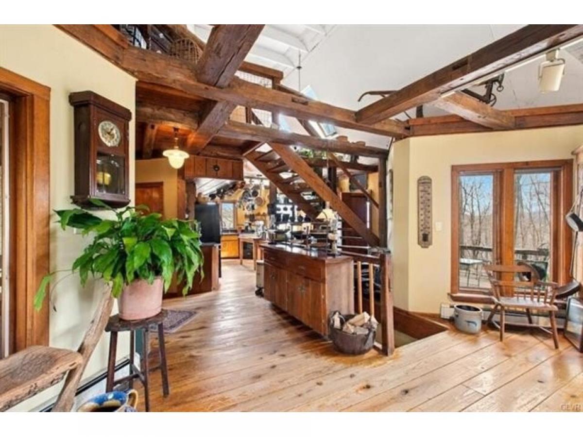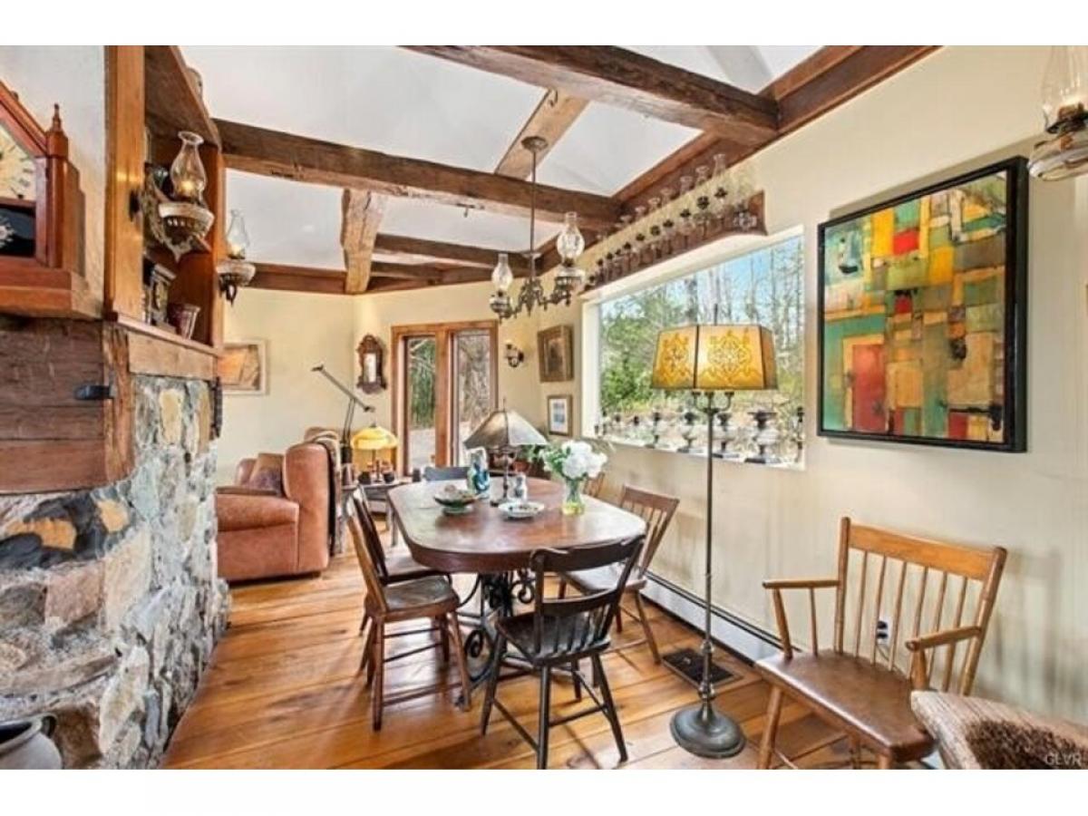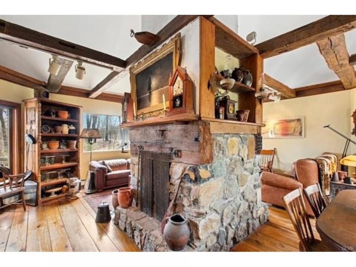 This romantic Bucks County hideaway is set amidst 12 acres of verdant forest on a sheltered bluff with mesmerizing views of the Delaware River. The environs are magical amp; the home#039;s artistic design amp; perfect position take full advantage of its surroundings. Extensive walking paths invite you to explore the acreage amp; pick a bouquet of wildflowers to accompany your dinner with vegetables from your garden, eggs from your chickens amp; fruit from your orchard. The cottage exterior evokes the English countryside. Inside, these charms are compounded, as each turn reveals delightful architectural details amp; a charming ambiance. The great rm offers soaring ceilings, double-sided fireplace, oversized windows amp; antique hand-hewn beams. Wide-plank hardwood floors from trees on the property run throughout the home. Granite counters amp; gas range adorn the kitchen that opens to the wrap around deck for front-row views of the majestic Delaware river. 2 BRs amp; full bath complete the 1st level. A vaulted master suite on the upper level has tree-top views of eagles soaring over the river. A walk-out lower level offers a 3rd full bath, sitting rm amp; family rm all steps away from the sauna, hot tub amp; inground pool. For guests who will never want to leave, there is an independent guest house with woodstove, laundry amp; separate driveway. Riverbend Cottage is positioned at the end of a meandering drive with easy access to NYC, NJ amp; Phila but in a world of your own.