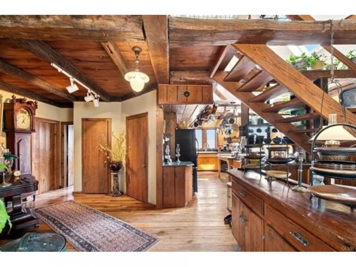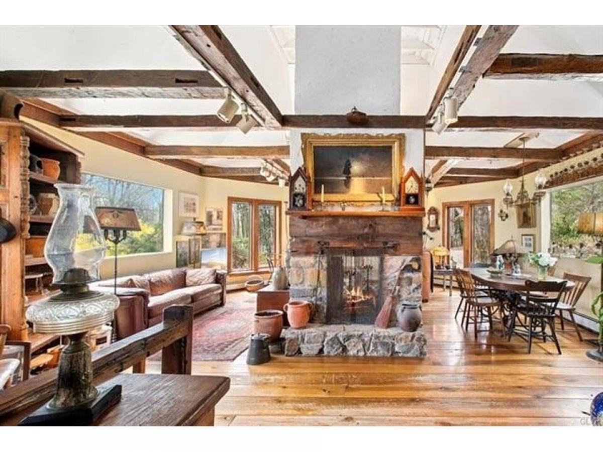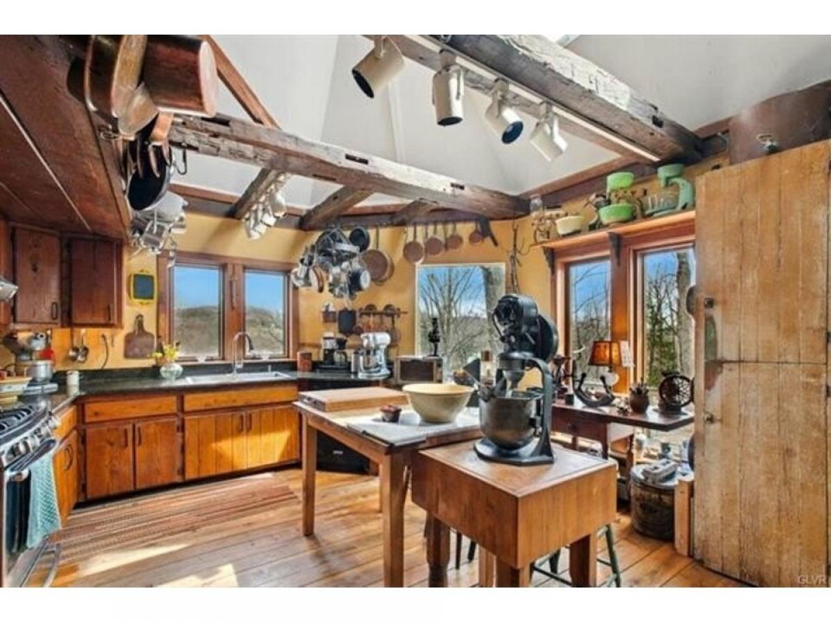 This romantic Bucks County hideaway is set amidst 12 acres of verdant forest on a sheltered bluff with mesmerizing views of the Delaware River. The environs are magical amp; the home#039;s artistic design amp; perfect position take full advantage of its surroundings. Extensive walking paths invite you to explore the acreage amp; pick a bouquet of wildflowers to accompany your dinner with vegetables from your garden, eggs from your chickens amp; fruit from your orchard. The cottage exterior evokes the English countryside. Inside, these charms are compounded, as each turn reveals delightful architectural details amp; a charming ambiance. The great rm offers soaring ceilings, double-sided fireplace, oversized windows amp; antique hand-hewn beams. Wide-plank hardwood floors from trees on the property run throughout the home. Granite counters amp; gas range adorn the kitchen that opens to the wrap around deck for front-row views of the majestic Delaware river. 2 BRs amp; full bath complete the 1st level. A vaulted master suite on the upper level has tree-top views of eagles soaring over the river. A walk-out lower level offers a 3rd full bath, sitting rm amp; family rm all steps away from the sauna, hot tub amp; inground pool. For guests who will never want to leave, there is an independent guest house with woodstove, laundry amp; separate driveway. Riverbend Cottage is positioned at the end of a meandering drive with easy access to NYC, NJ amp; Phila but in a world of your own.
