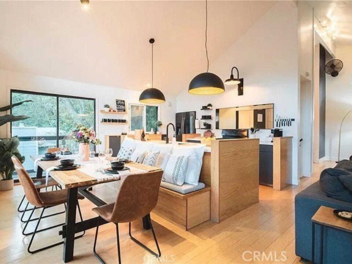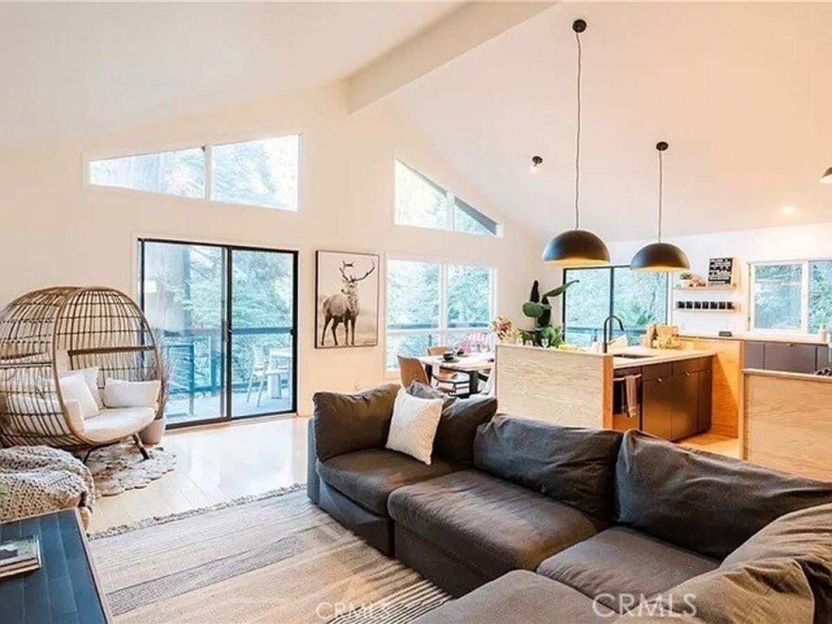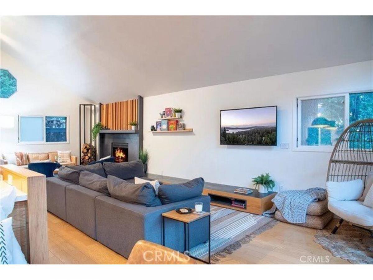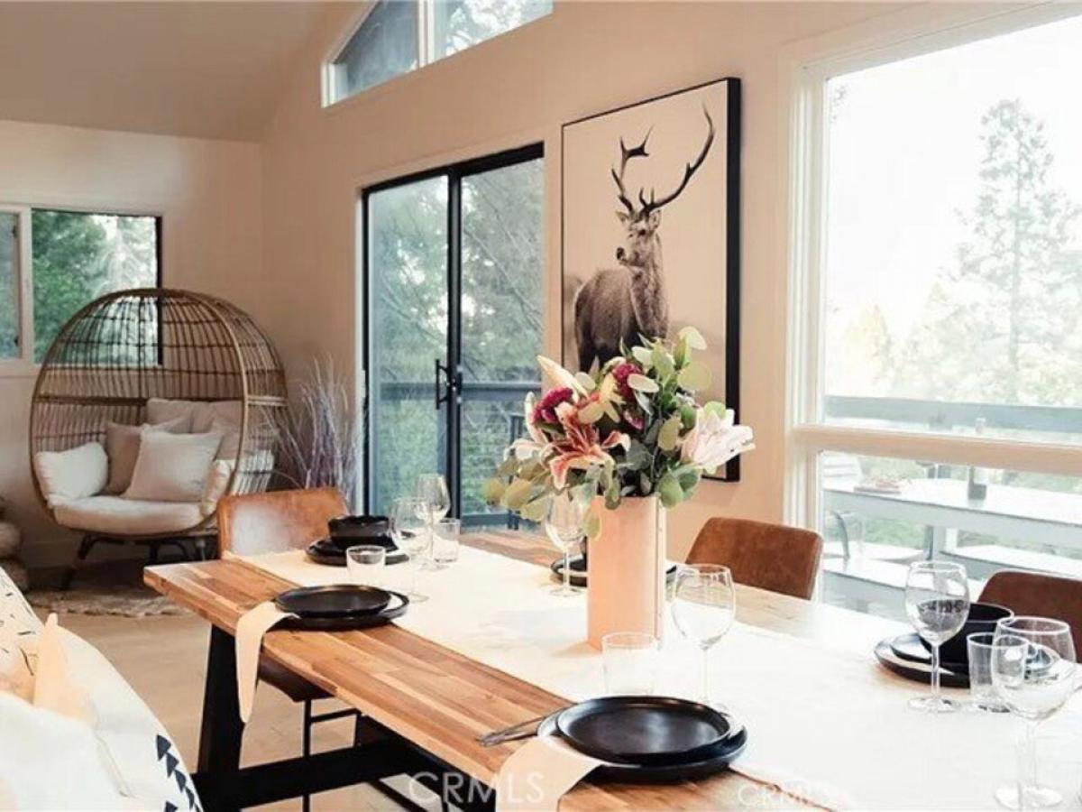 Welcome to the Dover Modern Treetop Cabin, a fully renovated tri-level retreat tucked away on a serene private road in Lake Arrowhead. Originally built in 1982 and completely remodeled in 2022, this home masterfully blends modern architecture with natural elements, creating a luxurious escape surrounded by towering pines and crisp mountain air. Whether youacirc;euro;trade;re sipping coffee on the deck, basking in the sunlight streaming through floor-to-ceiling windows, or cozying up by the fire, this home offers the perfect balance of tranquility and modern comfort. Spanning 2,158 sq. ft. with 5 bedrooms and 2.5 baths, this stunning cabin has room for up to 10 guests. The main level boasts an open floor plan with vaulted ceilings and a seamless flow between the living, dining, and kitchen areas. The stylish kitchen is fully equipped with Samsung appliances, a Keurig coffee machine, and a spacious island with black accent finishes and pendant lighting. The adjacent living areas provide the perfect spaces for gathering, with a mid-century modern sitting area by the fireplace and a cozy lounge with a 55-inch TV and an array of games. Large windows and sliding doors connect the indoor spaces to the expansive treetop deck, complete with sleek cable railings, an outdoor dining area, and a fire pit, all with breathtaking forest views. The second level features three beautifully designed bedrooms, each with luxurious queen-sized mattresses and serene forest views. A fully remodeled bathroom on this level offers both a walk-in shower and a full bathtub, ideal for unwinding after a day of exploring. On the lower level, discover two more unique bedrooms. The charming kids loft is a playful hideaway complete with a double mattress, bean bag chairs, books, and toys perfect for little adventurers. The spacious primary suite is a private retreat, featuring a semi-firm king mattress, a cozy sitting area, a gas fireplace, an ensuite bath with a walk-in shower, and a private deck overlooking the forest. For added convenience, a full desk is available for those needing to work remotely.