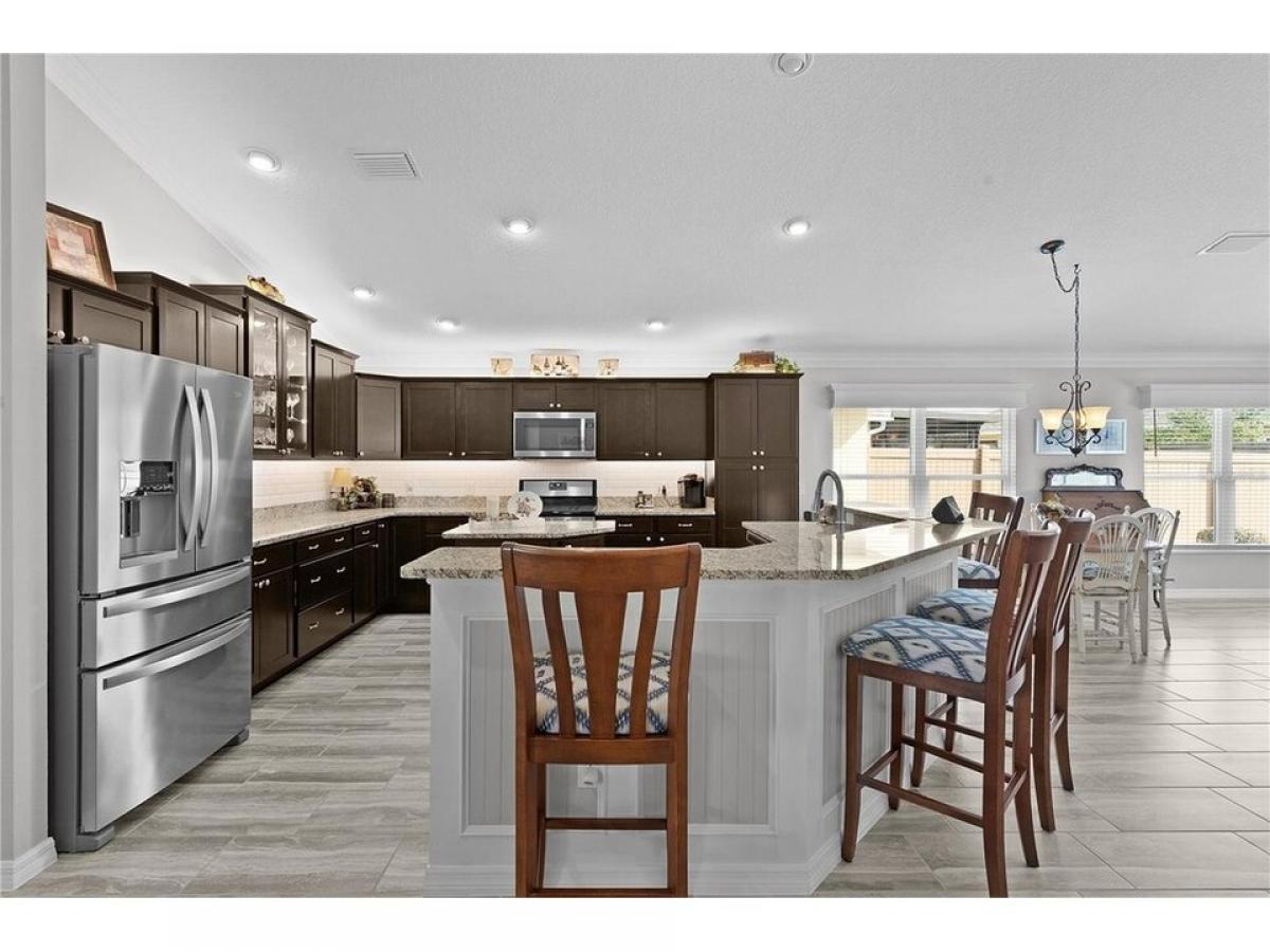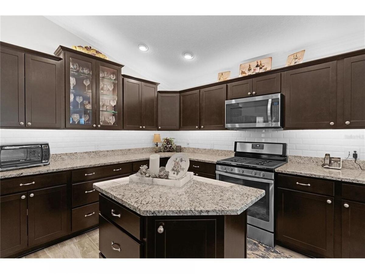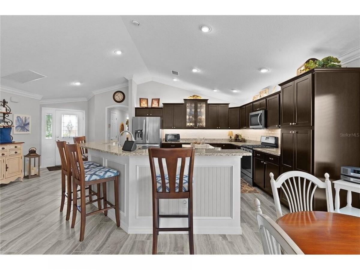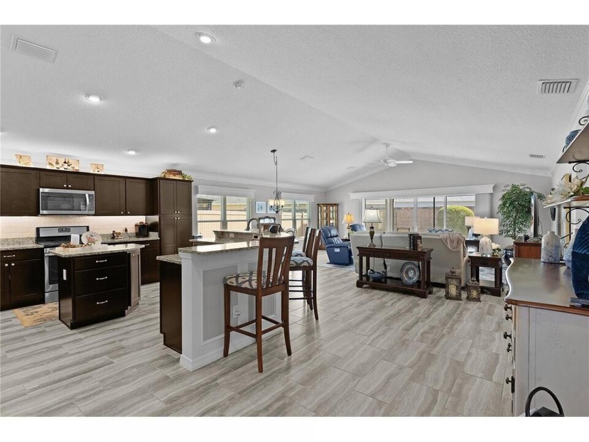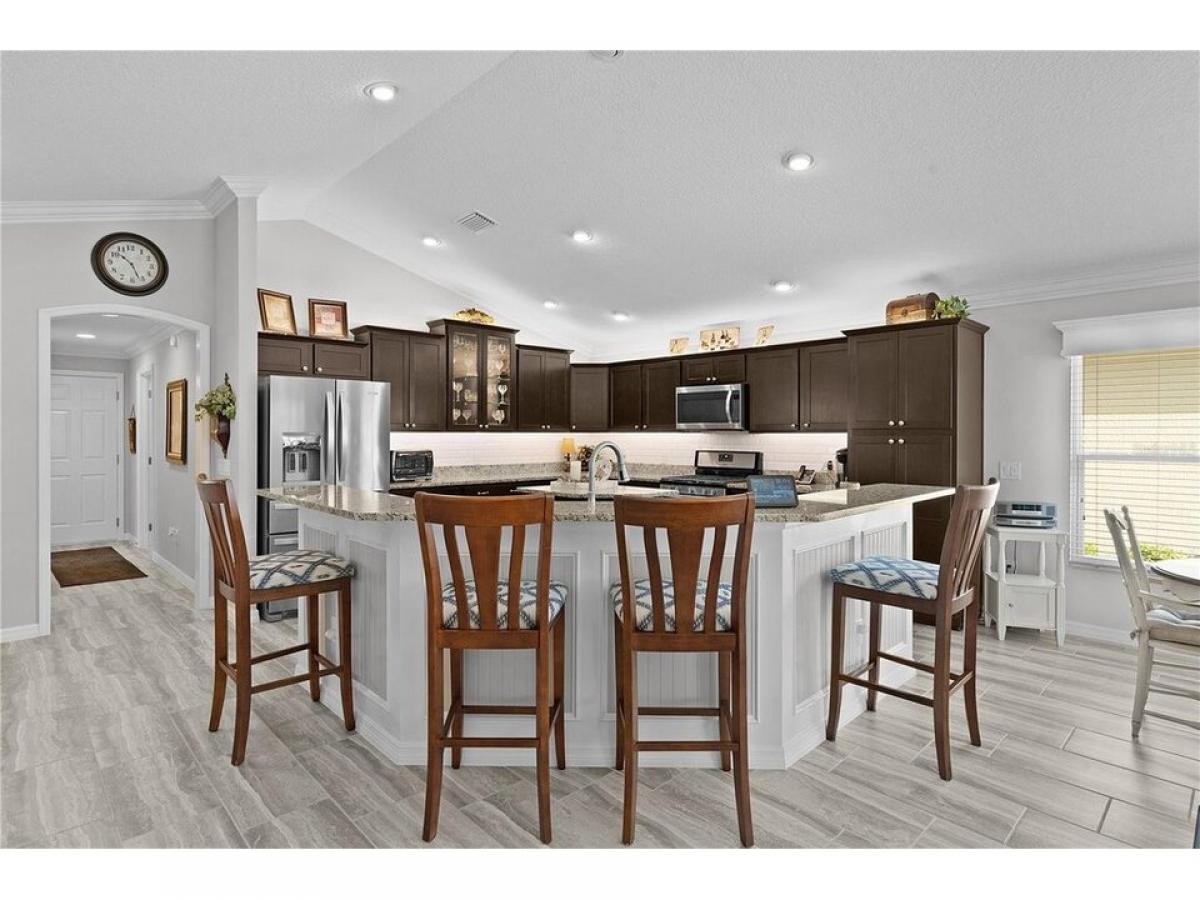 Why buy new when you can buy better than new without the expense and hassle of upgrading. Built as a MODEL HOME, and finished off with stunning upgrades throughout by the seller, all the work has been done for you---Letrsquo;s start with Curb Appeal. All Custom: Stacked Stone landscaping bedsgt;gt;gt;, Low-Maintenance, yet beautifully landscapedgt;gt;gt;Finished Drive and Extended front entry patiohellip;.and NO GRASS TO MOW. Yoursquo;ll feel pride of ownership at first glance, and as you enter, yoursquo;ll fall in love. This One-owner home has been transformed with gorgeous Porcelain Tile in the Main Living and wet areas , and the Vaulted Knockdown ceilings are accentuated with CROWN Moulding, and Wood Cornices which trim out all the windows, plus Custom Trim over the doorways! The layout of this spacious, almost 1800 sq. ft. 3/2 WINSLOW BUNGALOW VILLA has a fabulous OPEN Kitchen which boasts an ISLAND, QUALITY GRANITE Counters, STEPPED-UP Mocha Cabinets with Glass inserts and accent lighting below and above, Pull-out Shelves (even in the Pantry), STAINLESS Appliances with NATURAL GAS RANGE, a Custom Backsplash, and Wainscoting accent under the Breakfast Bar = VERY, VERY NICE! Yoursquo;ll be drawn through the living room through STACK-BACK Sliders to a wonderfully PRIVATE and inviting SPACIOUS SCREENED LANAI to enjoy the beautiful setting of the courtyard with a finished outdoor patio and landscaping. The Primary Suite has a TRAY Ceiling, a Large CUSTOMIZED Walk-in Closet, and the En-Suite Bath is impressive with a Tiled ROMAN SHOWER, HIS/HERS Sinks, GRANITE Counters, Pull-out Shelves (both bathrooms), and a Privacy commode. The 2 Guest Rooms are comfortably sized and provide ample closet space, and the Guest Bath is upgraded with GRANITE Counters and a Tiled Shower/Tub combo. The INSIDE LAUNDRY room (washer amp; dryer included) has additional cabinets and leads to the OVERSIZED Garage which will accommodate 1 Car and 2 Golf Carts! Impossible to list all, but many valuable extras include Light kits on ceiling fans, Electric Garage Door Screen, Whole House NOVA Water Filtration system, Utility Sink and Cabinets in the Garage, Attic Stairs, Window Blinds, Guttershellip;.and the Glass insert and matching sidelight on the entry door enhance this light and bright home! Tax line reflects property taxes only. CDD line reflects combination of annual bond, maintenance and fire district. Bond Balance: $14,946.80. Sohellip;what are you waiting for? If not now, when???