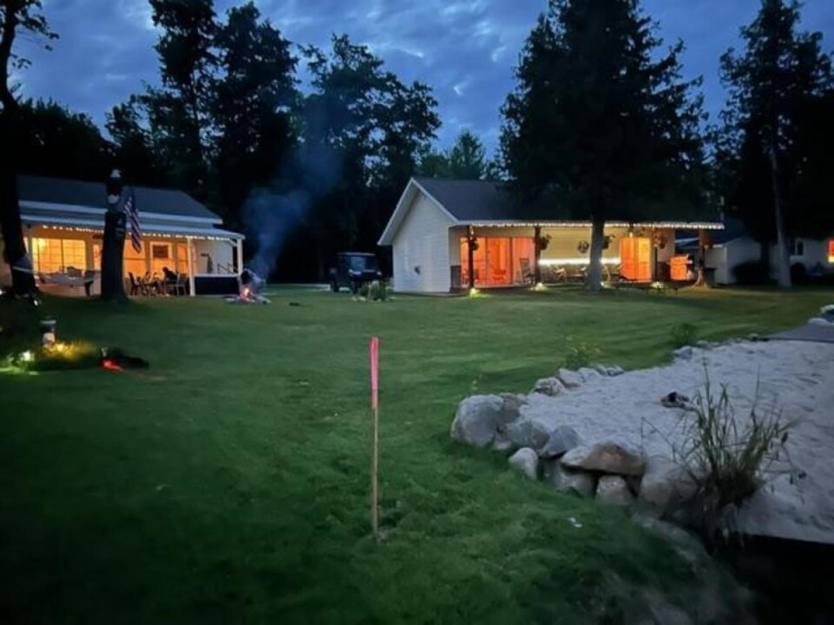 Spectacular waterfront offering on all sports Lake 13, level lot with 82' frontage, main home/cottage has 2 bedrooms, very open kitchen/dining area with lots of built ins and an electric fireplace, living area with electric fireplace with great view of the lake, spacious utility room, covered porch, PLUS summer guest house/shed offering summer kitchen, full bath, bedroom, washer/dryer., each dwelling has covered porches towards lakeside, two blacktop driveways, well landscaped yard with owners pride of flowers, well is only 3 years old and services both dwellings, includes vacant off water land 120' x150', security/alarm system, make your appointment to see this lakefront offering #7045