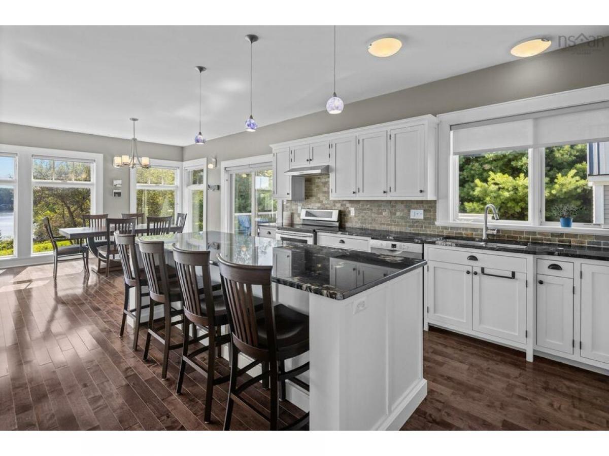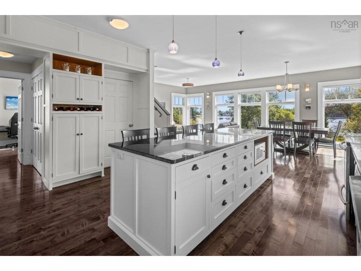 Perched on a premium, long, 0.29 acre lot coasting down towards the ocean allowing for an unobstructed view within The Narrows community, sits this stunning home. All the space you need with 3,100 feet of living area, built in 2014 with four bedrooms and three bathrooms. A sensible layout with an open kitchen, dining and living room plan and the convenience of a main level bedroom and full bathroom. The second floor has a primary bedroom with a walk-in closet, four-piece bathroom, third bedroom and oversized laundry room. The surprise is a lower-level walkout and ocean view from the spacious recreation room as well as a fourth bedroom and three-piece bathroom completing the home. Interior attention to detail is evident with oodles of features; Marvin windows, inch birch hardwood floors, cork flooring in the lower level, custom kitchen with granite countertops, quartz countertops in the bathrooms, and custom blinds. High end mechanicals are also in place; HRV, Trane heat pump full house heat and air conditioning ducted system with electric backup in the air handler, Hydra Dettson electric boiler for lower level in floor radiant heat, and the upstairs bathroom is Dettra heat electric in floor heating. No expense was spared with the construction; lifetime warranty metal roof with mechanical standing seams, cedar prestained shingles which never need painting, a side deck for evening barbecue get togethers and an 8 X 12 storage shed. Utilities are also taken care of; two-hundred-amp service, copious water from a three thousand gallon cistern, community septic and a Sediment filter/UV light. Furnishings and contents are also included. Every homeowner has the use of the boathouse, wharf with slipway and your own locker. Saunter down to your 167 feet of direct ocean frontage and take advantage of a parking spot for your boat. The Rails To Trails path also cuts right past the waterfront portion. Complete details of the home are available on the feature sheet.