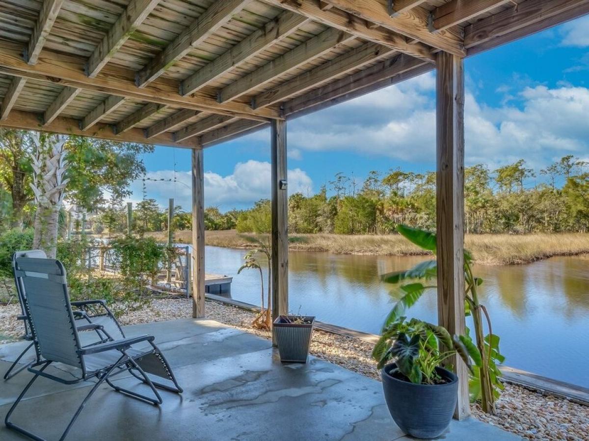 READY TO MOVE IN - Nicely remodeled, painted inside and out, new decking, new dock and poles, appliances, flooring, tankless hotwater, all within 4 years, Roof is metal; Sit on your deck watching sunsets, fish, manatee, all waterfowl, or walk to private dock for your boat. fish in your back yard or go deep sea fishing, fresh water fishing, kayaking,or minutes to white sandy beaches, Enjoy Beach Jams with Bands, Arts and Crafts weekly, Pot Luck dinners monthly, Food trucks, Regattas, wind surfing and more, Golf Cart community - Quiet dead end street and gated for residents. Ride your golf cart or walk to the Sunday Chapel for worship - beautiful view of the gulf and wildlife