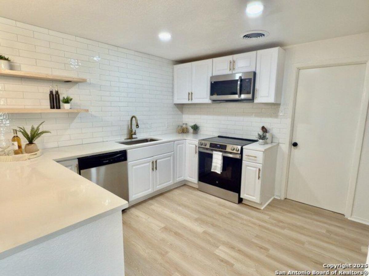 **SELLER FINANCING available. FHA/VA welcome!!** Welcome to this beautifully remodeled 3-bedroom, 2-bath home in the desirable Windcrest subdivision! Situated on an oversized lot of more than a third of an acre, this property offers ample space for outdoor living and entertainment. Inside, the open floor plan highlights new hard flooring throughout, a modern kitchen, updated bathrooms, fresh paint, and stylish fixtures. Enjoy cozy evenings by the large fireplace or step outside to a fully fenced yard adorned with majestic mature trees, providing shade and tranquility. This Texas gem is perfect for comfortable family living and gatherings. Don#039;t miss your chance to make this extraordinary home yours! Note, CDOM reflected in MLS is not accurate.