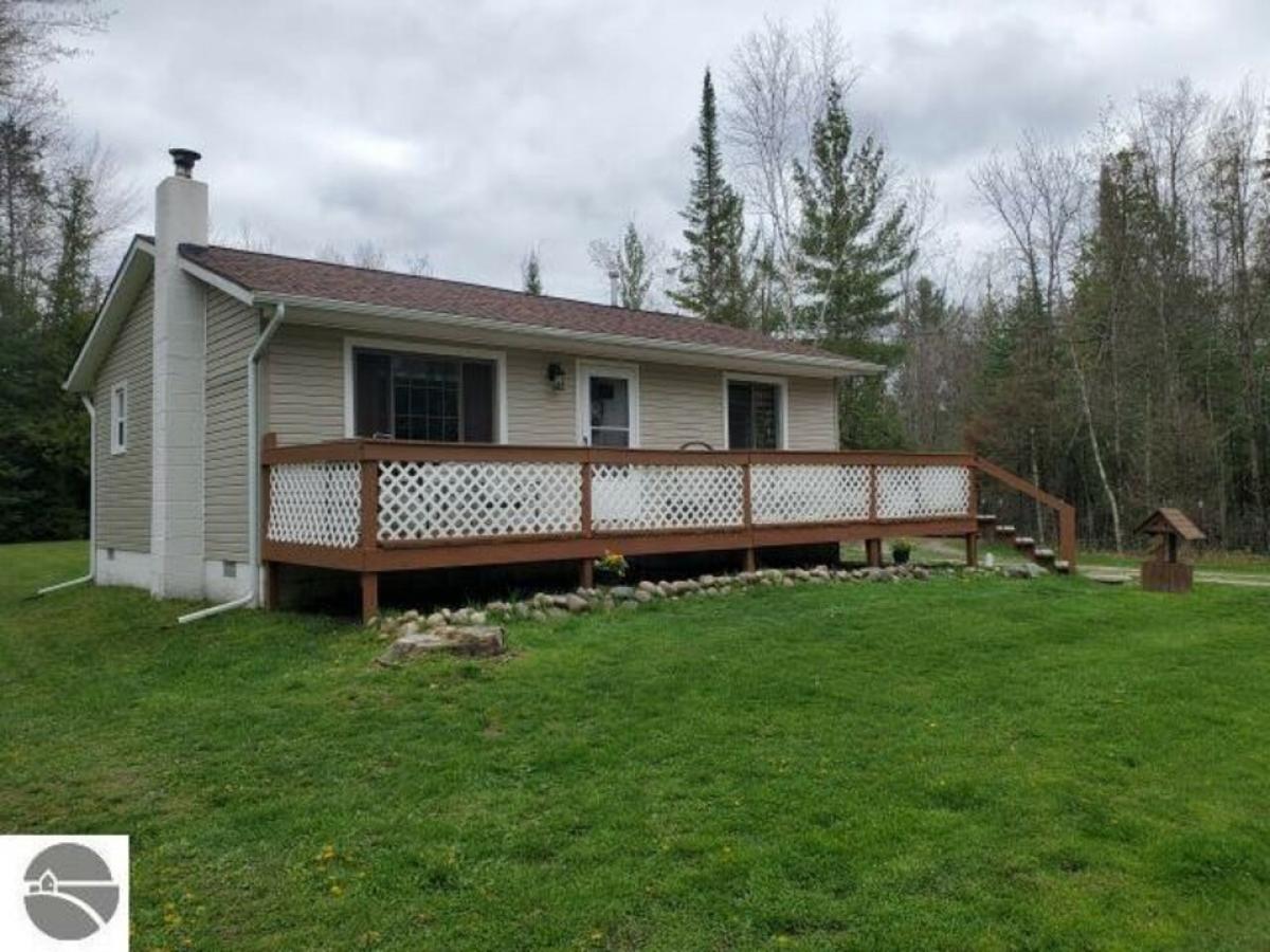 WELL-MAINTAINED 3-bedroom home on over a half-acre of property and sits off of road. Some updates include newer roof, windows, flooring, updated bathroom with tiled shower and has been freshly painted. Kitchen includes all appliances, there is a wood stove to help heat this home and a separate laundry area with lots of storage. Bedroom 3 is currently used for storage but would make a cute bedroom or a nice office space. There is a large 20x40 garage that has electric, well and septic. Very nice wrap-around deck for entertaining or enjoying the evening breezes and a fenced garden area for the green thumb. Nice rural setting and located in fantastic recreational area.