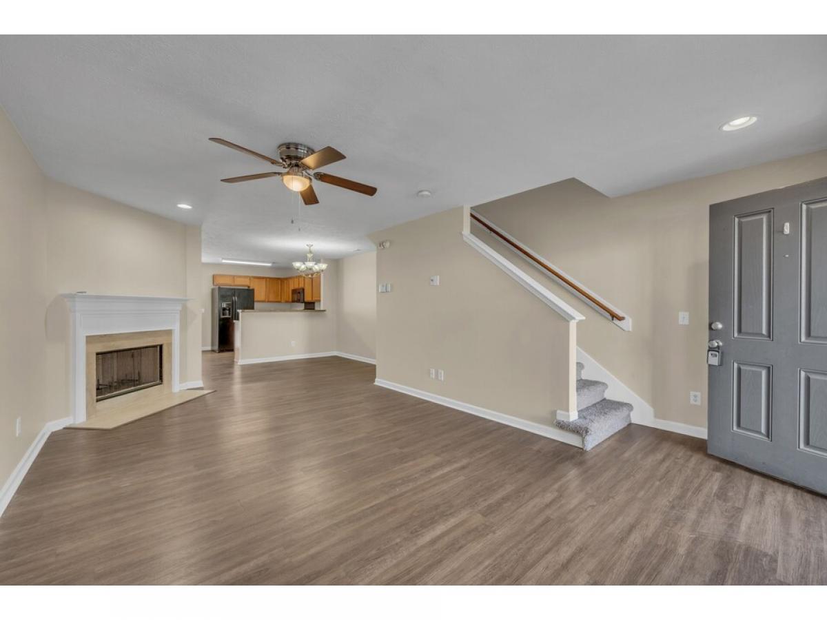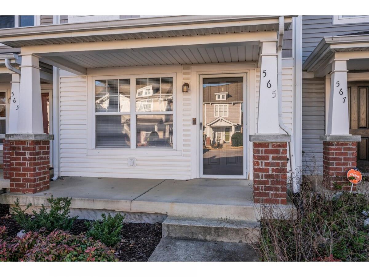 Charming 2 bed/2 .5 bath townhome. Covered front porch. Parking out front. Unique floorplan! Kitchen is in the back!! Freshly painted throughout. New carpet on stairs and upstairs. New blinds. New screens. Includes refrigerator. This community no longer allows units to be purchased as investments. No new rentals. Trash is picked up from the back patio.