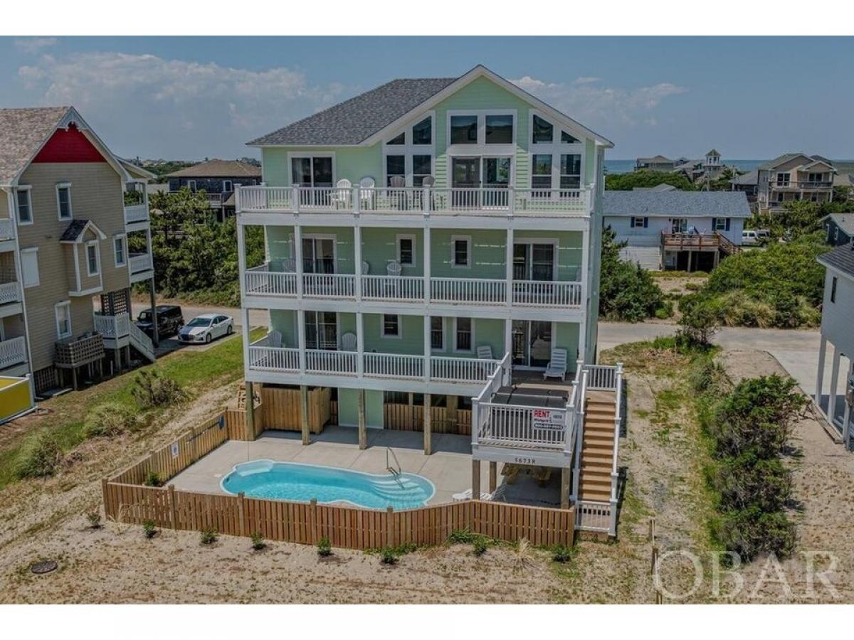This stunning vacation rental, brand new and ready for its first rental week starting June 8th, boasts 6 bedrooms, each with its own en-suite bath, plus 2 additional half baths, ensuring the utmost in comfort and privacy. Designed with an open-flow concept and spread over multiple levels, the home features an expansive great room highlighted by a soaring cathedral ceiling, seamlessly leading to a state-of-the-art kitchen. Outfitted with stainless steel appliances and gleaming granite countertops, this kitchen is a home chef#039;s dream with breathtaking views of both the sound and the ocean. An elevator provides easy access to every floor, including an incredible game room and an intimate theater room, perfect for family fun or entertaining guests. Stepping outside, you#039;ll find a private pool, creating a resort-style atmosphere right in your backyard. The multi-level decks, some covered, offer stunning views of the ocean and the sound, perfect for enjoying a morning coffee or an evening cocktail. Located in the serene Hatteras Village, this home comes with deeded ocean access, and the HOA offers boat slips at the community marina. This golf-cart-friendly neighborhood provides easy access to all that Hatteras Village has to offer, including local restaurants serving the freshest seafood and regional cuisine, as well as several marinas offering ample opportunities for deep-sea fishing. Don#039;t miss this rare chance to own apiece of coastal paradise. Schedule your private tour today and prepare to be enchanted by this stunning semi-oceanfront haven! Rental projection on file with an estimated rental income of $140,000.