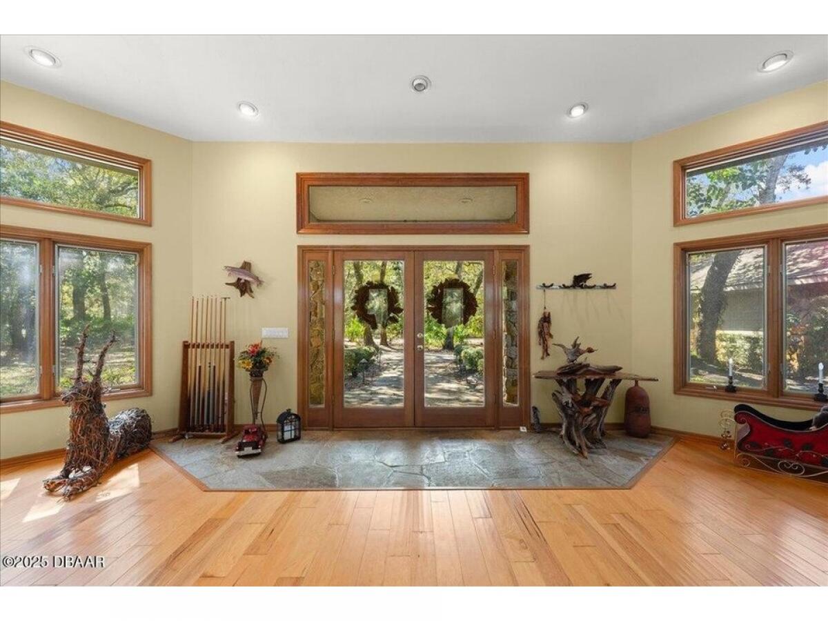 Escape to your private retreat in Flagler Beach! This custom-built, one-owner home sits on 11.5 acres that backs to canal that runs through marsh offering ultimate tranquility and a connection with nature. Located Enjoy the peaceful surroundings from both the front and back patios, or take a dip in the screened-in inground swimming pool. Inside, the grand main living area impresses with soaring 26#039; ceilings, tongue-and-groove wood floors, and an abundance of natural light from expansive windows. The open floor plan includes a living room with a wood-burning fireplace, a dining area, and a bar area perfect for entertaining. The spacious kitchen features a center island, breakfast nook, and ample cabinet and counter space. The extra-large master suite is a true retreat, boasting two walk-in closets and a private master bath with a stand-up shower and garden tub. Each of the three bedrooms has its own private bathroom, offering ultimate convenience and privacy for family and... ... guests. Additional highlights include an inside laundry room and a 3-car garage. Nestled in a private location, this stunning home offers the perfect blend of nature and comfort, all just minutes from Flagler Beach. Square footage received from tax rolls. All information recorded in the MLS intended to be accurate but cannot be guaranteed.