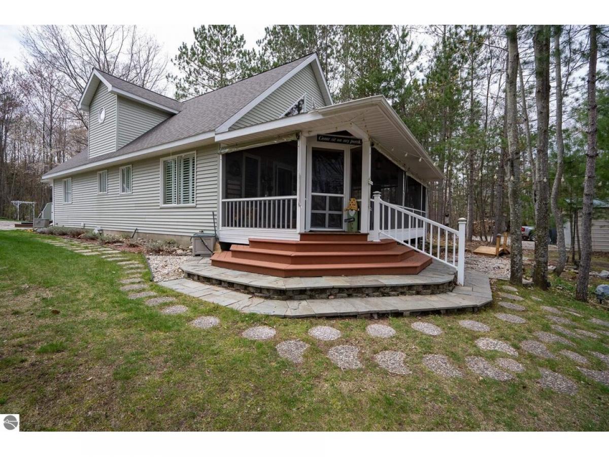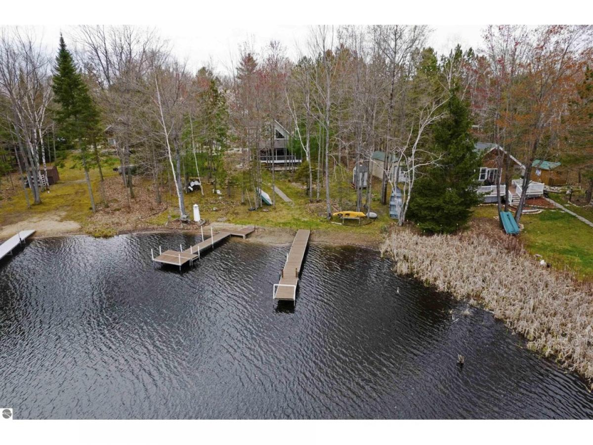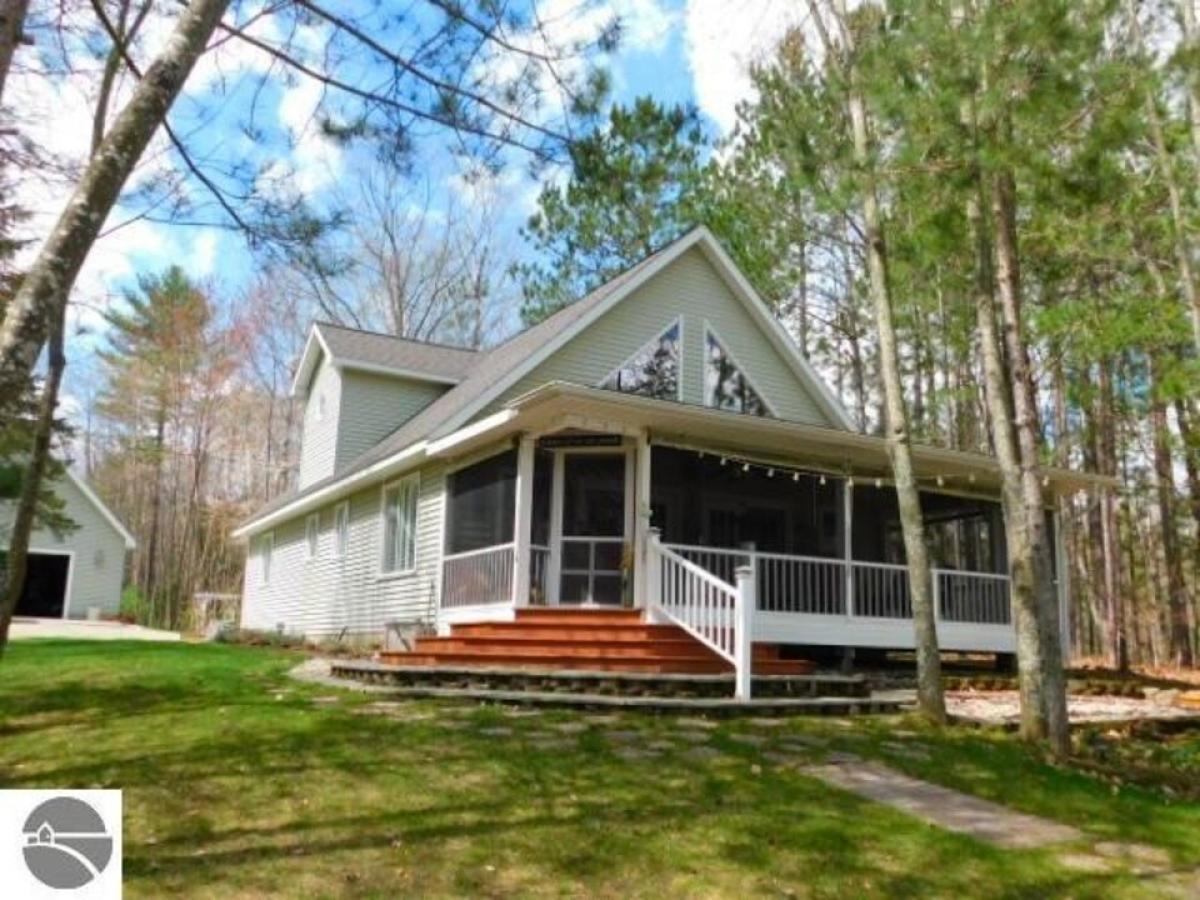 GORGEOUS, CRYSTAL CLEAR PICKEREL LAKE! Custom built chalet style home with 2-3 bedrooms, bath on both levels, quality throughout - tile entry, hardwood floors, custom wood blinds, wonderful stone fireplace for that cozy feeling! Perfect open floor plan, spacious kitchen with island and french doors off the dining to a full length screened porch to relax in the evening! Seller has thought of everything! Parcel is wooded for privacy, level to the water, two docks and includes a detached matching garage with unfinished bonus room above. Bonus room could be finished for additional sleeping, rec room for the kids or extra storage! Enjoy great Trout and Walleye fishing and perfectly located near the Blue Bear Snowmobile Trail for all season recreational activities! This one is a joy to see!!