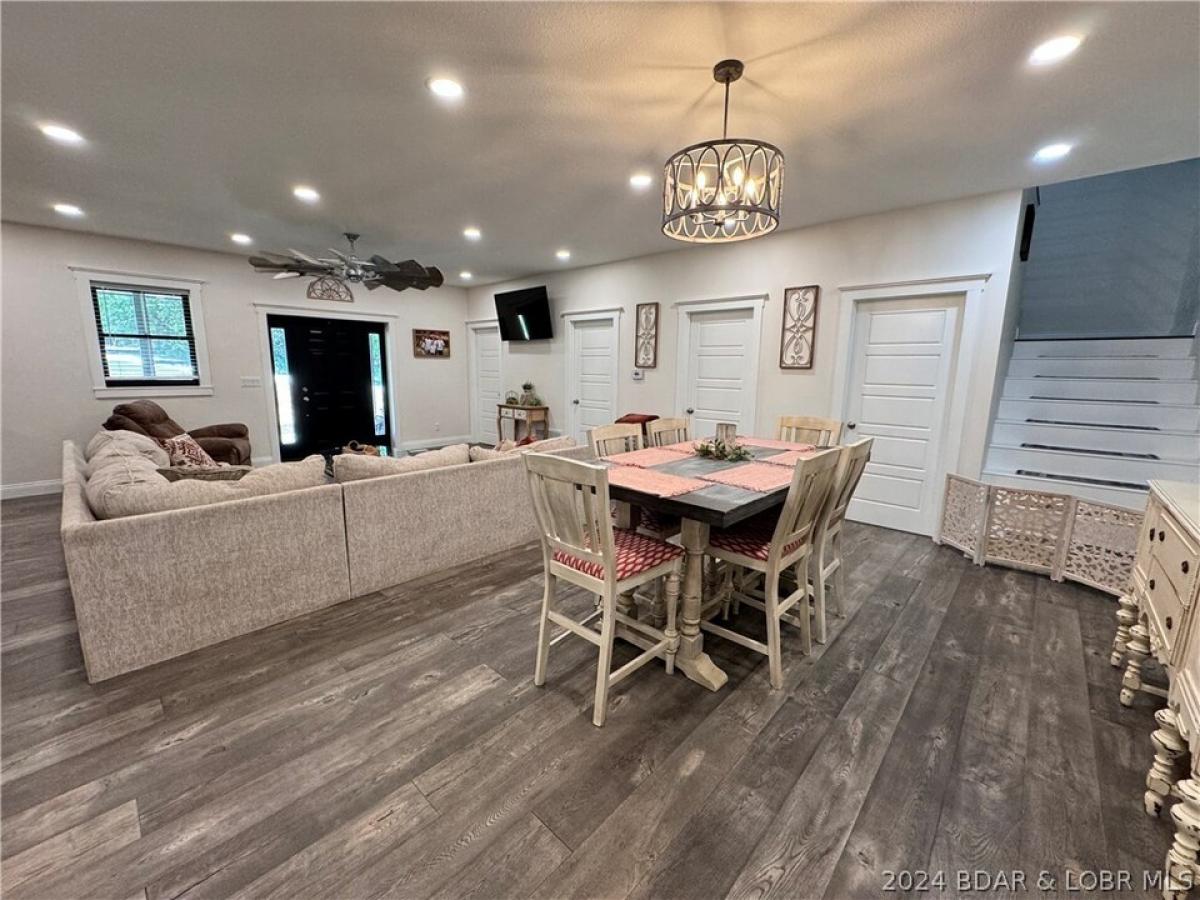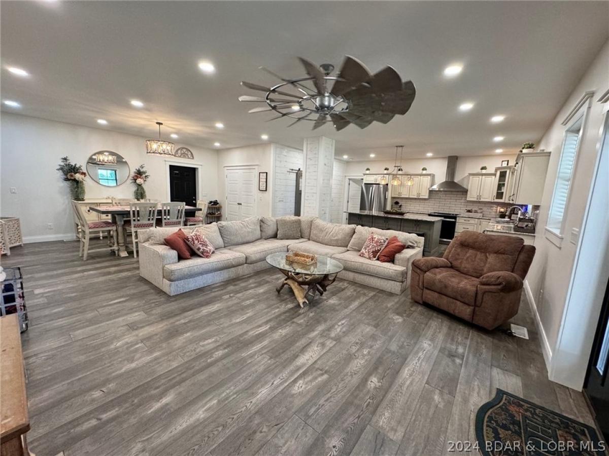 Newer Construction Home on 5 acres that checks all the boxes! Custom Built with so many upgrades...you will be impressed as soon as you step thru the door! Main level features an open floor concept with beautiful custom kitchen, Oversized Island w/granite countertops, Stainless appliances, Large Butler Pantry, Main Level Living, Spacious Master Suite with an awesome walk in shower, Cozy Dining area, Laundry Room, Office, LVP Flooring, Accent walls - Love it! Upper Level features a Family Room, 4 add'l bedrooms & another bathroom. There is plenty of room for everyone! The Attached 4 car garage is 30x60 in size and is heated (propane) and insulated with Half Bath, Storage Closet & a nice deck area off the back of the building - perfect for grilling & hanging out! This is a Custom Built Home - Crawl Space w/vapor barrier, Dual HVAC with Heat Pump & Forced Air Electric, Decorative Concrete on deck, sidewalks & covered porch. The large covered porch is the perfect place to relax & enjoy the peaceful country Views! Don't forget about the cool firepit! If you are looking for a private location just a short drive to Lake of the Ozarks ... You found it! Add'l 13 Acres available for extra $.