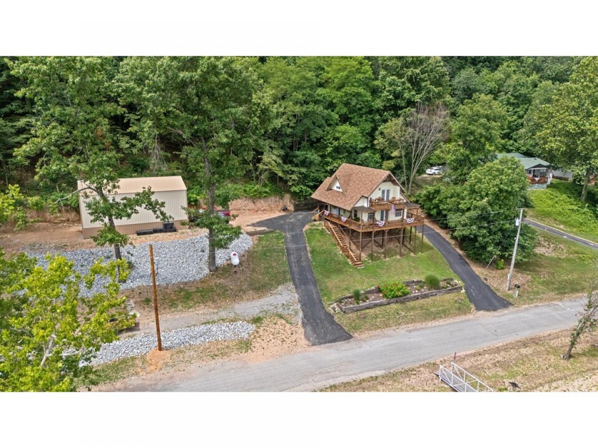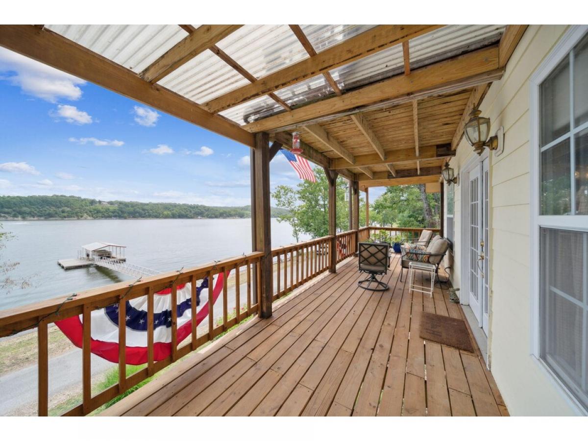 Welcome to Grand Lake! This immaculate two-story home offers breathtaking panoramic views of Drowning Creek, located just across the road. Set on two spacious lots, the property features a one-slip boat dock, perfect for water enthusiasts. Inside, the home includes 2 bedrooms, 2 bathrooms, and a versatile loft area that can serve as a third bedroom, game room, or additional living space. The open-concept living and dining area seamlessly connects with the kitchen and breakfast bar. A brand new, 1400 sq ft drive-through shop equipped with electricity and a hydraulic lift provides easy access to top-level storage. Enjoy lakeside living on the decks that span both levels of the house. The property also features a paved circular drive around the house and extra parking in the front.