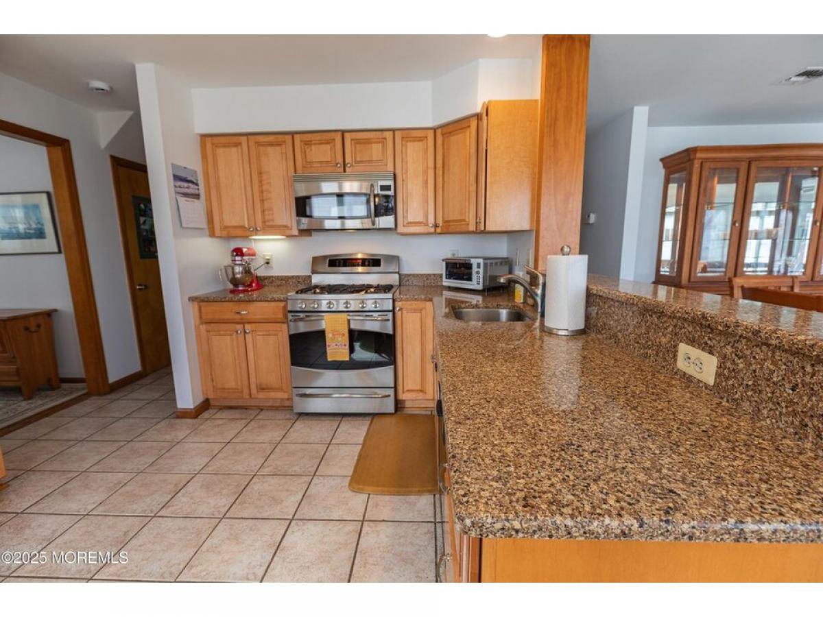 Ocean block home with oversized lot in Seaside Park! This 4 bedroom, 2 full bath home has a huge back yard with a slider leading out to a sunny deck. The home has been updated with an open floor plan and a large, family room. Enjoy the fresh ocean breezes and sunshine from your spacious deck. The kitchen has been renovated to include maple cabinets and quartz counter tops and lots of room for your culinary creations. The primary bedroom is on the first floor and is expansive with 3 dream closets and a private bath. The second bedroom is also on the first floor along with a second full bathroom, which was recently renovated. Two more generous sized bedrooms are upstairs. Also, a large attic space that can be converted to more living space. Bayview upstairs with room to expand!