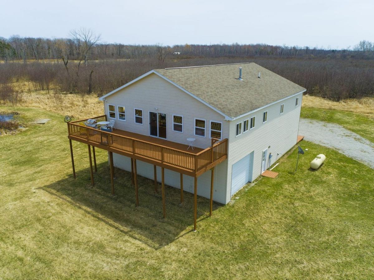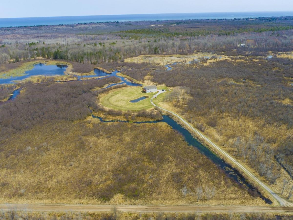 Cozy up-north hunting camp with 100 private wooded acres, and over 2,000 feet of frontage on the scenic Black River! Large spacious open floor plan with 2400 square ft of living space upstairs, features a stunning great room, with living room, kitchen & dining areas all open to each other, vaulted ceilings, wood stove, tongue and groove, large windows with panoramic views of the river, 4 spacious bedrooms, two 3/4 bathrooms, and an elevated riverside deck to take it all in from. Downstairs you'll find another 2400 sq ft. with concrete floors and 3 large bay doors. Downstairs can be used as massive garage for storing all your toys, or converted to even more living space. This incredibly unique property has it all! Don't wait! Call today!