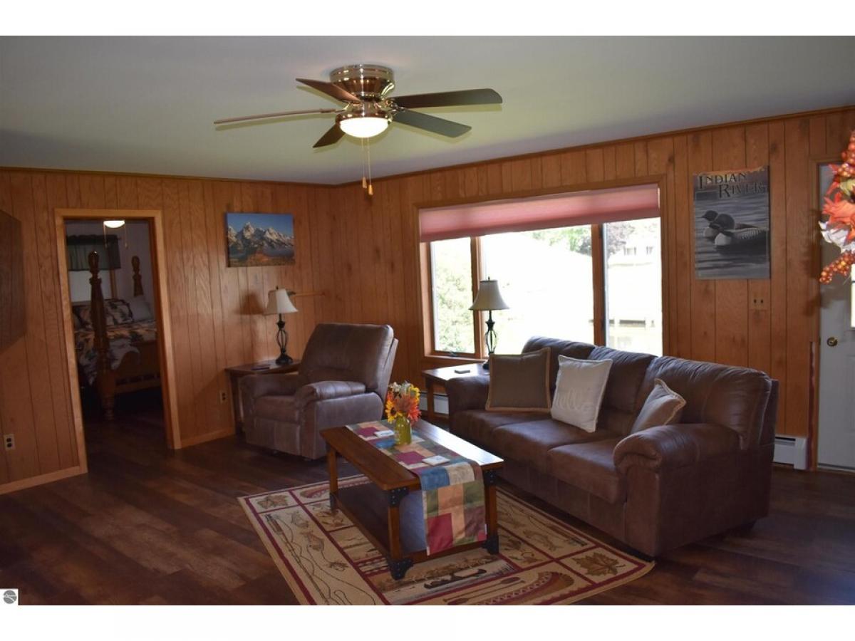 Here is your rare opportunity for your own access to Indian River, Burt Lake and Mullet Lake from your own yard/dock. This is a 3 bedroom with 1 full bath and 3/4 bath overlooking the canal. As a awesome bonus the 24x32 garage has been converted into a family hangout that has it's own bar, refrigerator, pool table, shuffleboard and even it's own flat screen TV. This home has been used as a AIRBNB and is booked frequently. Recent updates are new roof,new HVAC,new hot water heater, new flooring throughout and totally remodeled garage/rec room. The yard is very well kept and has it's own sprinkler system to keep the grass nice and green. The road and driveway are both paved. This home is being sold fully furnished turn key and is a rare opportunity to be in the heart of Indian River area.