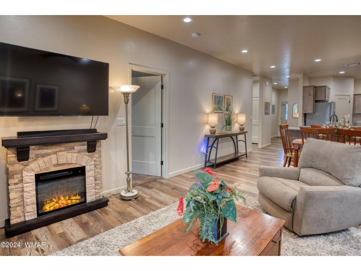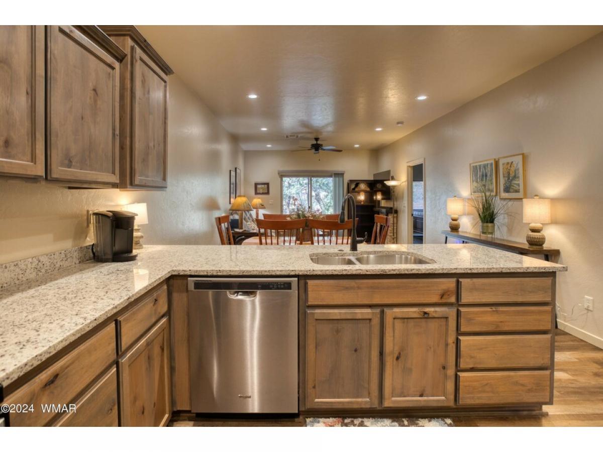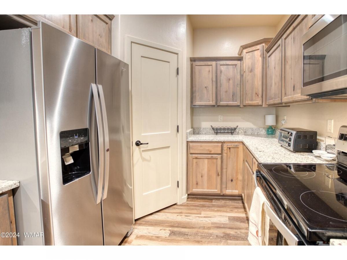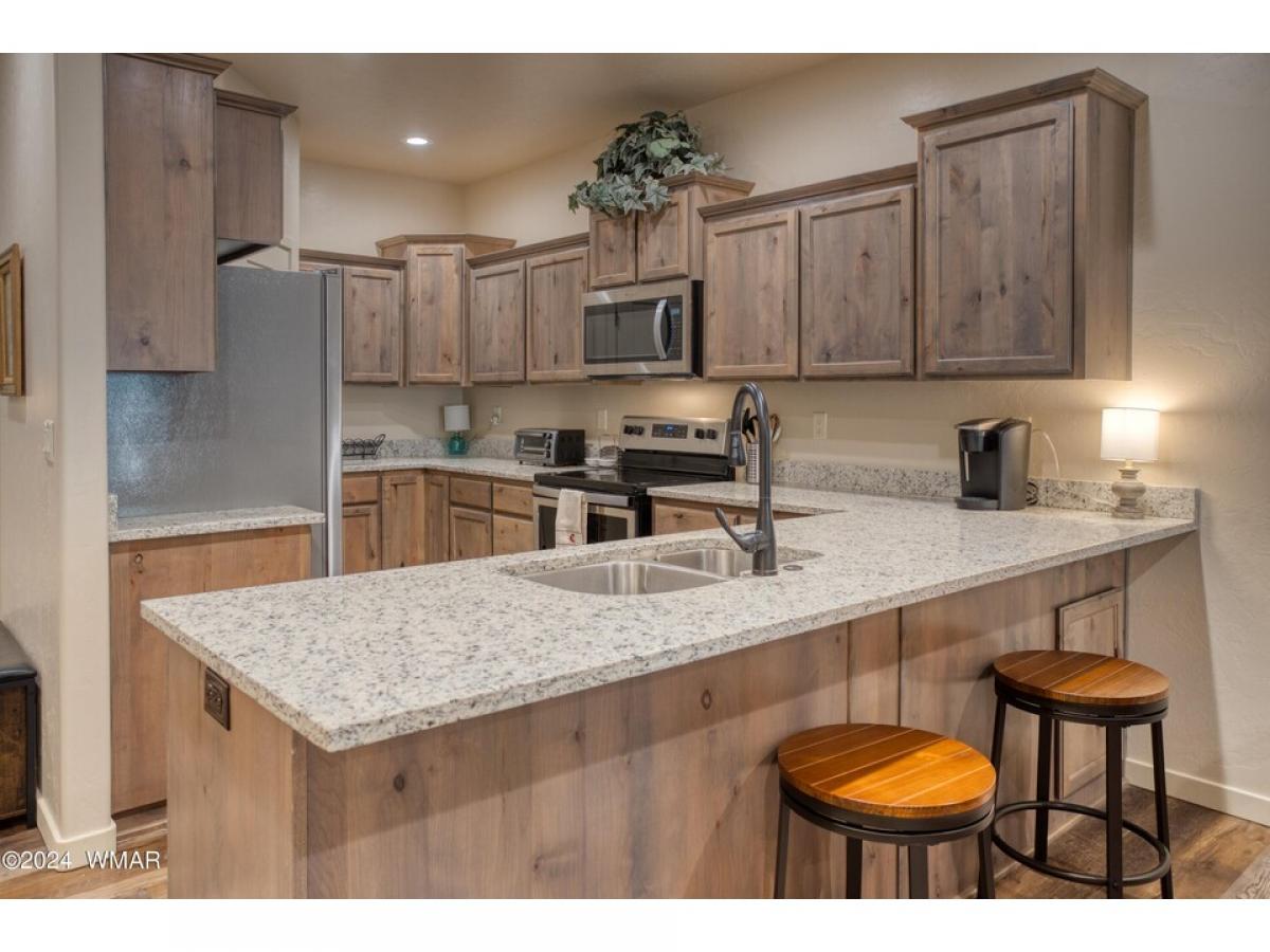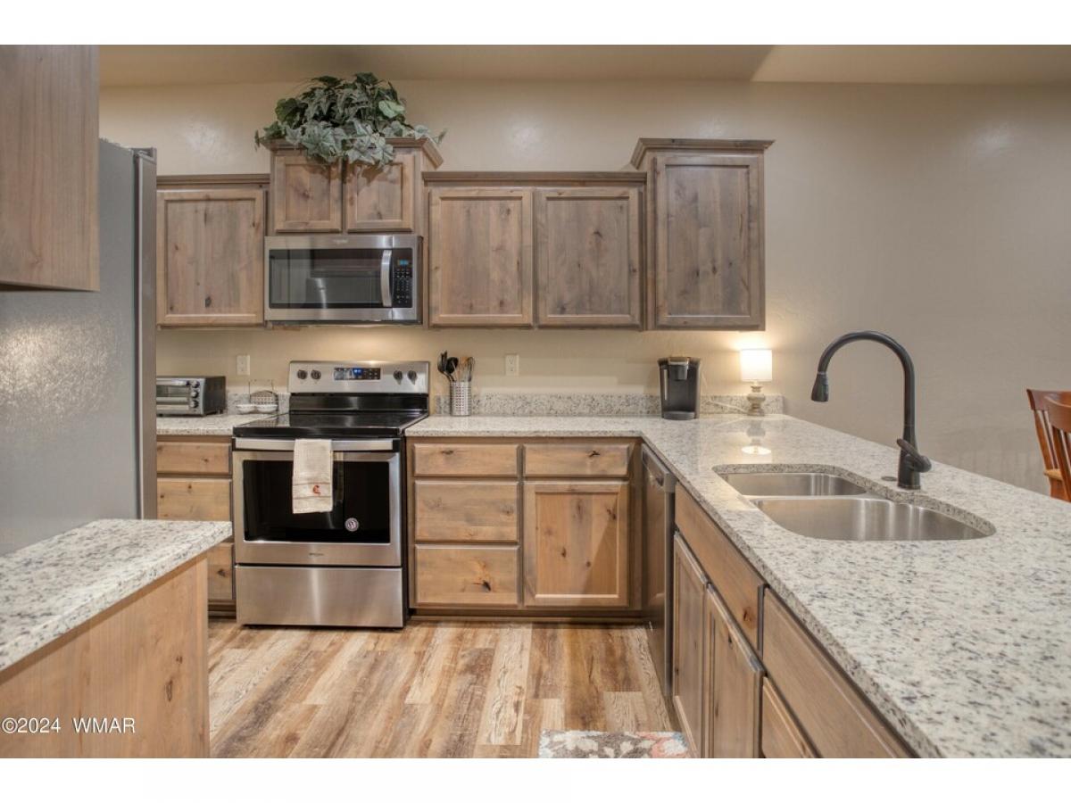 $3000 seller credit available on this stunning townhouse located in the highly desired, Starlight Ridge Community. This 2 bed, 2 bath, 1,176 Sqft home has an attached 1-car garage and features gorgeous granite countertops and knotty alder cabinetry throughout. The kitchen has stainless steel appliances and opens into the dining and living area, perfect for spending the night in or entertaining! Each bedroom is oversized and the Primary bedroom has a private door to the patio and an ensuite bathroom. When you're outside enjoying the cool mountain air, you look out onto an open, forested area - lots of privacy. The garage has epoxy flooring and has room for storage. Furnishings available outside of escrow - Read 'more'.... HOA includes blanket insurance on building, landscape maintenance, road maintenance including snow removal and trash service. Select fencing options for the back are available. Imagine living in the White Mountains of Arizona where you have 4 beautiful seasons and where you can breathe in the fresh mountain air and enjoy the 40 lakes and over 600 miles of rivers and streams. In addition to the amazing fishing, this area has one of the most extensive trail systems in the southwest for hiking, biking, horseback riding, quadding and more. Sunrise Ski Resort is also just 40 minutes away with 3 beautiful mountains to ski, snow board or sled. If shopping is your interest, you will love the antique stores and the multitude of arts and craft shows that happen in the summer. The music festivals have something to fit everyone's enjoyment. Do you love to golf? There are 7 amazing golf courses, 3 that are public. The White Mountains, where this home/cabin is the best kept secret of Arizona! Come and explore and enhance your living! Pinetop-Lakeside was also voted 'Best Cabin Region in the U.S"... Embrace the MAGIC!