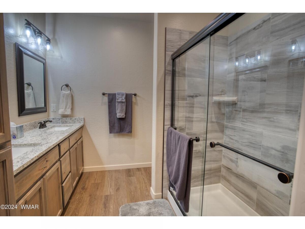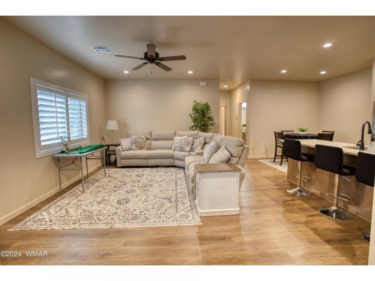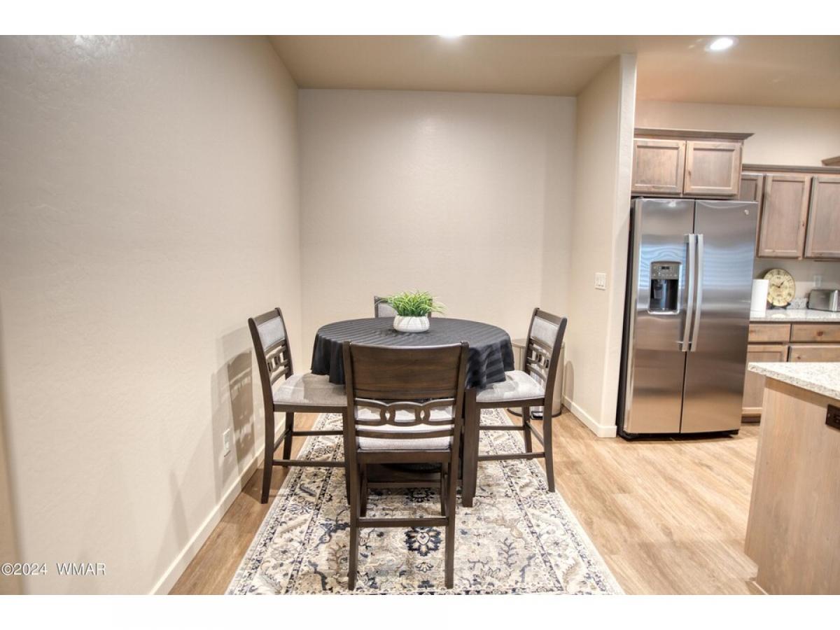 Discover this cozy move-in-ready single-story townhome in the peaceful Starlight Ridge community, nestled in the heart of the White Mountains. This inviting 1,173 square foot property, set on a .07-acre lot, features an open layout accentuated by high ceilings and recessed lighting. Notable amenities include granite countertops, a cozy stone gas fireplace in the spacious living room, and a well-equipped kitchen with knotty alder cabinets, stainless steel appliances, and a walk-in pantry. There are plenty of upgrades in this build! All wood flooring, tiled main bathroom, wood screen doors, an on-demand water heater, and custom wood blinds! The expansive private covered deck off of the master bedroom adds to the charm of this home. With two bedrooms, including a master suite with an en-suite bathroom, additional conveniences such as an attached garage, this home blends comfort with contemporary features. Positioned just a mile from local shops and dining, near golf clubs, hiking trails, and Sunrise Ski Resort, this property offers a perfect escape into the cool mountain air, ideal for those looking to enjoy the distinct beauty of all four seasons away from the city's heat.
