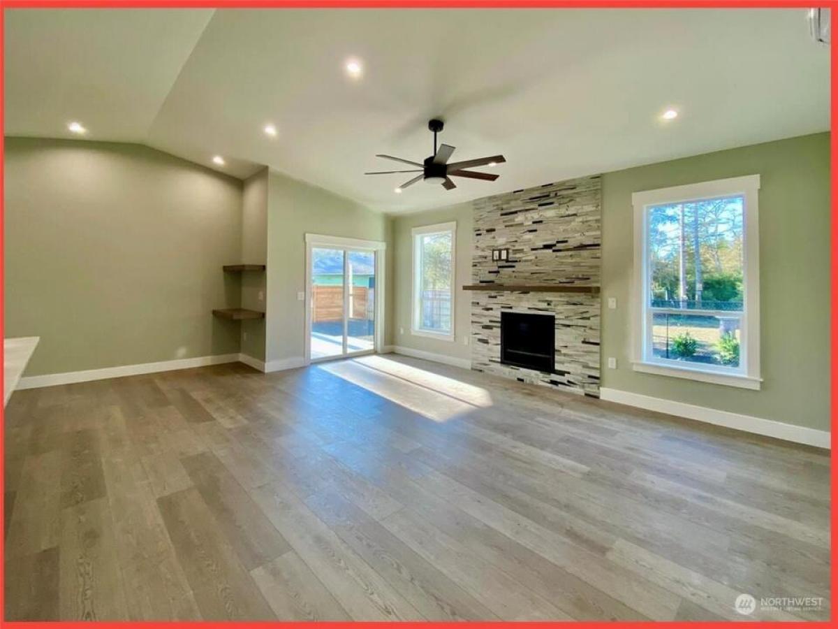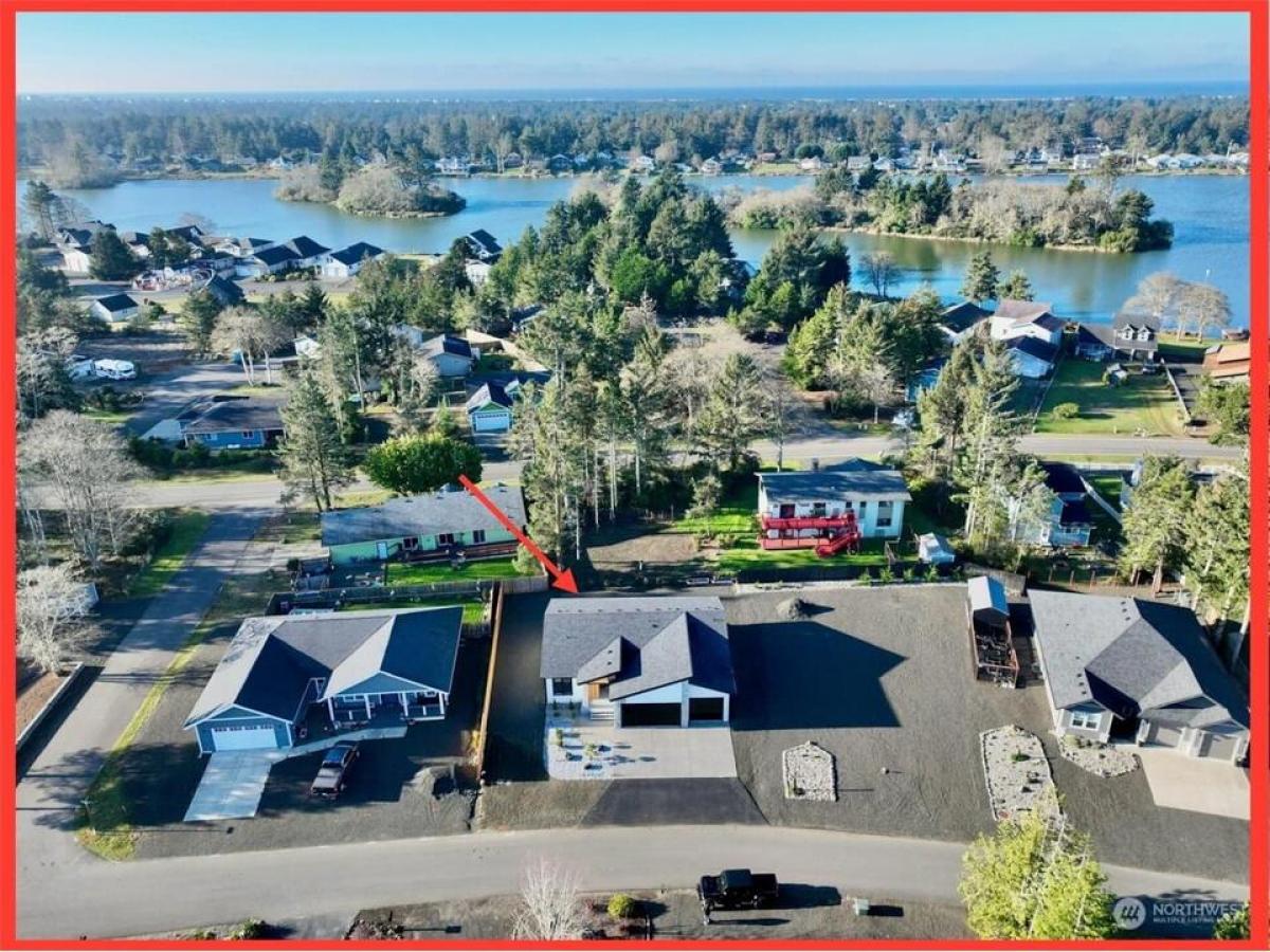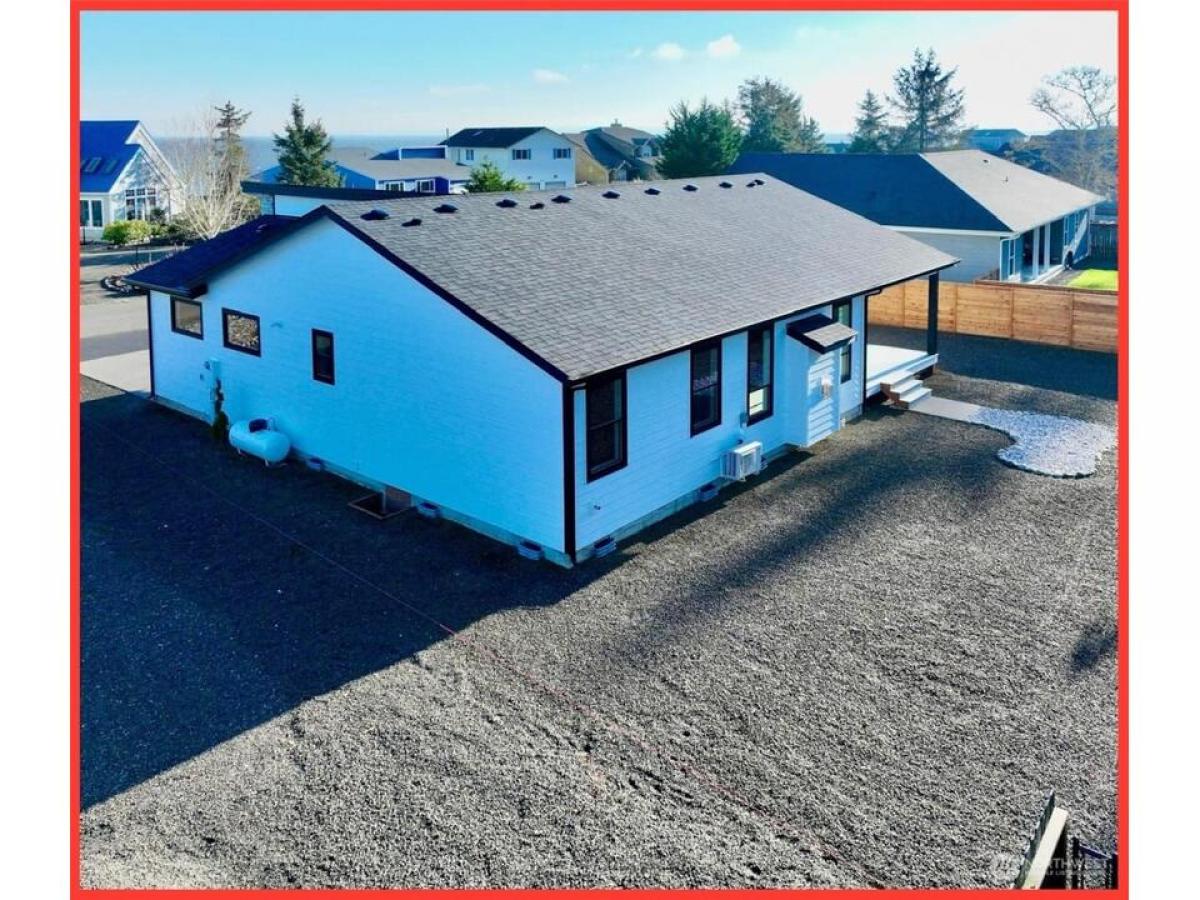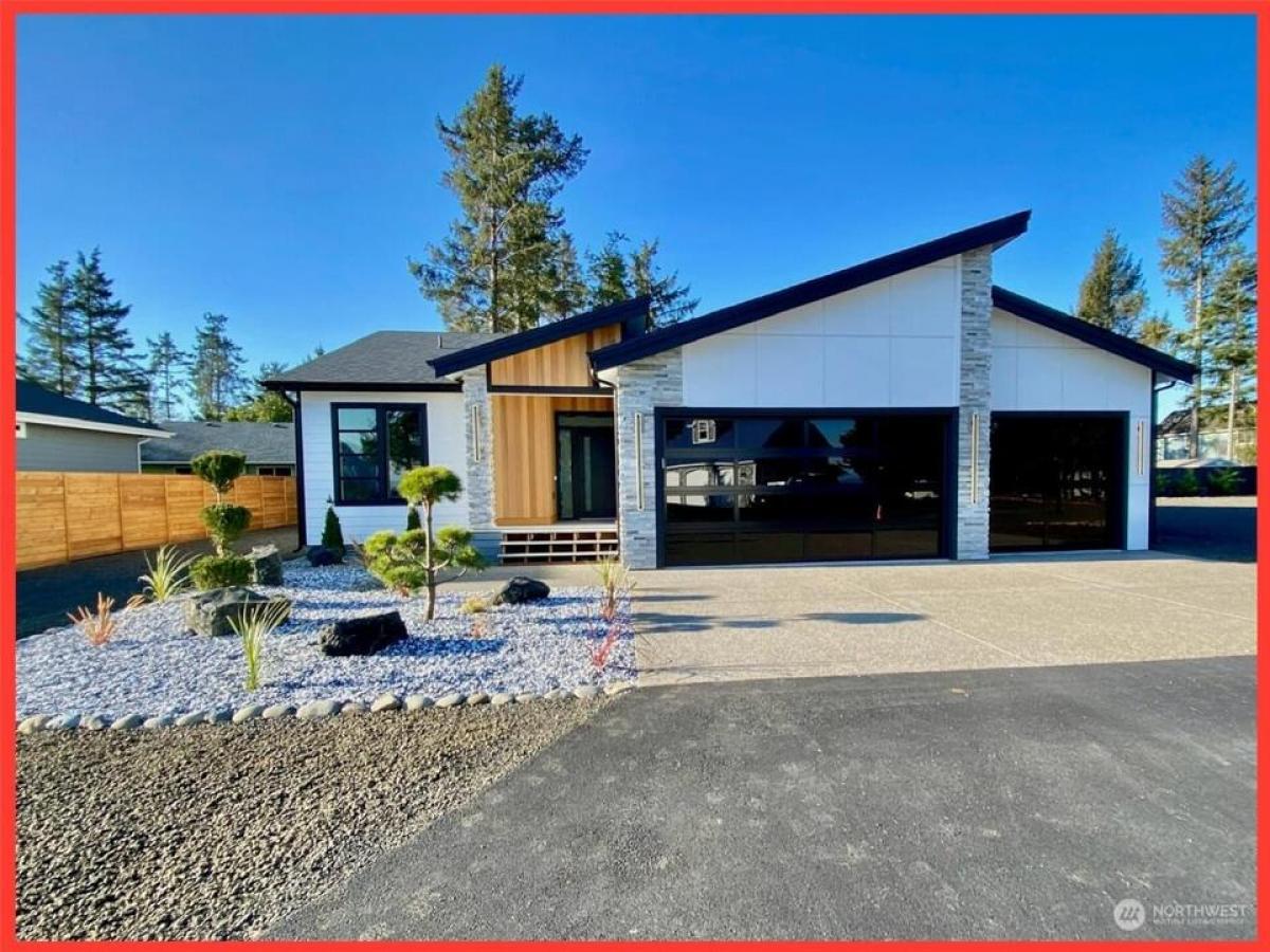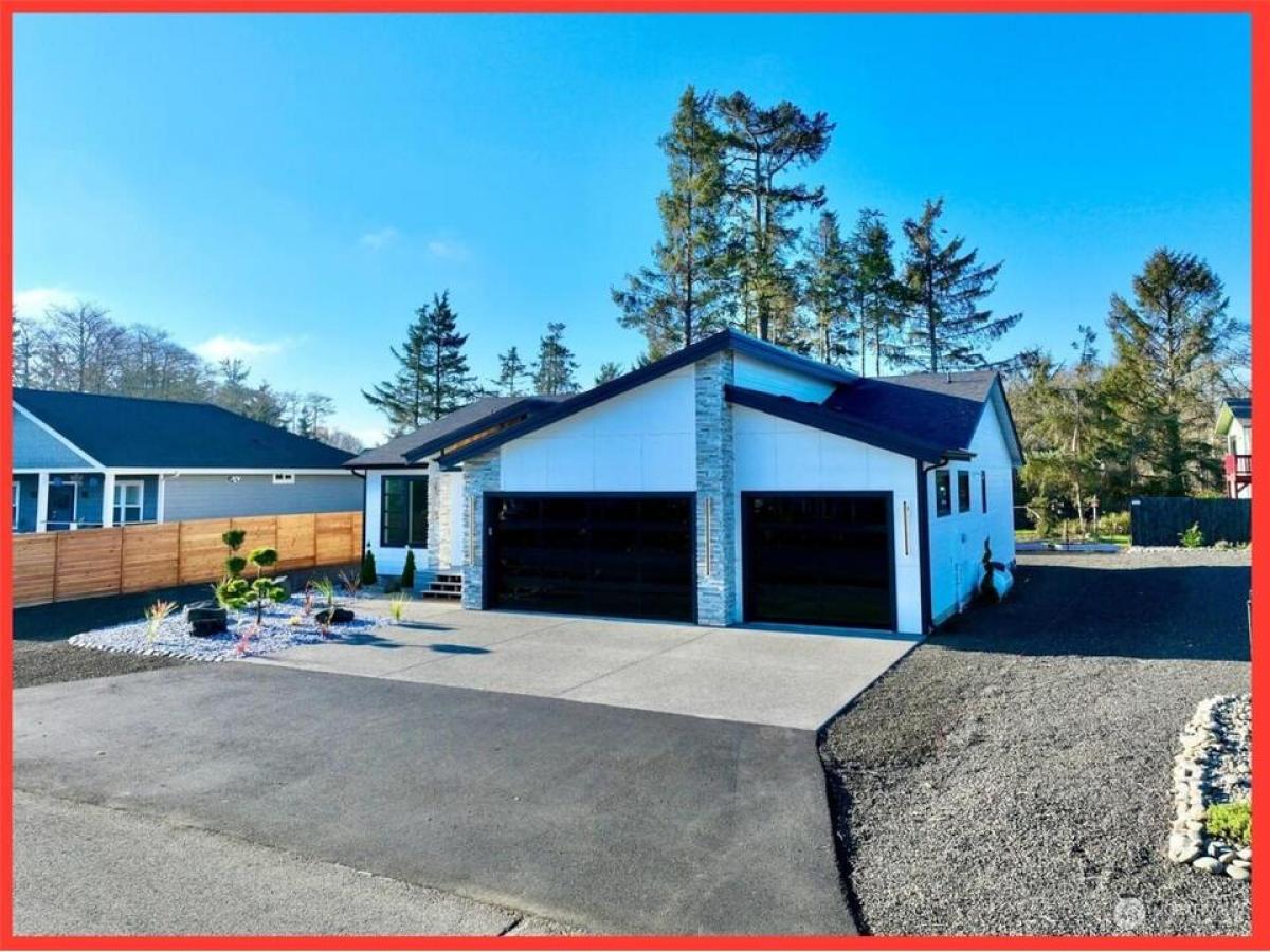 New Elegant Coastal Residence located across the street bayfront estates at Ocean Shores, WA! You will fall in love with this modern 1,497 sf home featuring 3 bedrooms, 1.75 bathrooms and oversized 3-car garage. This open concept plan features sun-filled rooms, 9' ceilings, and luxury vinyl plank flooring throughout. Enter the expansive great room with a floor-to-ceiling fireplace wall and gorgeous statement lighting. Kitchen w/tiled wall floating shelves w/lighting. Office nook with floating shelves. Relaxing primary en-suite bath w/dual sink vanity, makeup station floor-to-ceiling tiled shower. Tankless water system. Plumbed for EV charger/extra power outlet. Hot/cold exterior spigot. Landscaped and partially fenced 8050 sf parcel.