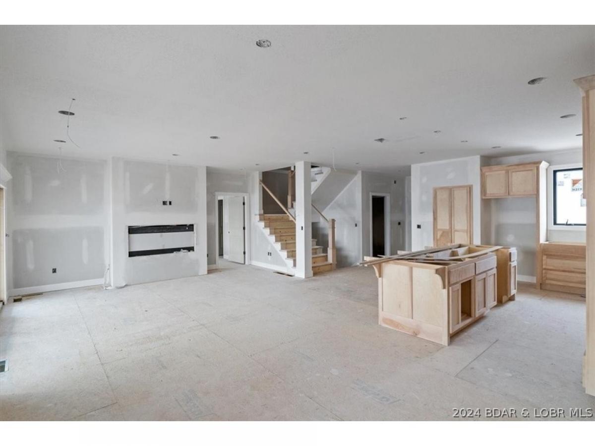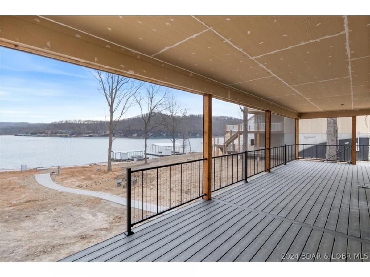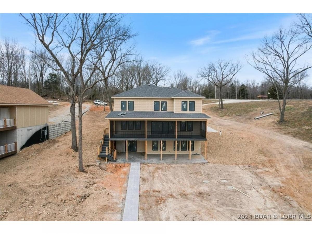 LUXURY NEW CONSTRUCTION Lakefront on the 53 Mile Marker of Lake of the Ozarks! Main level living featuring an open concept layout and lots of upgrades! Custom cabinets in the kitchen, quartz island, walk in pantry, and built in wall oven. Tons of natural light from nearly floor to ceiling black vinyl windows and 4 panel oversized slider door to the full house length covered and screened deck! Crown molding in the main level ensuite with a walk in shower, walk in closet and washer/dryer hookups. The upper level includes a second ensuite, two additional bedrooms, plus a large bonus room over the garage that is perfect for extra sleeping, home office, etc. Downstairs has a second living room, wet bar, another bedroom, and utility with second washer and dryer hookup. Walk out to a covered patio with stamped concrete, an outdoor kitchen, and path leading to the fire pit and dock area that features a NATURAL SANDY BEACH!!! The entire lot is incredibly gentle and perfect for pets, kids, games, lakeside fires and more! Enjoy stunning lake views, calm waters great for swimming and water sports, excellent fishing, and numerous restaurants/bars/gas docks nearby! Completion early Summer 2024.