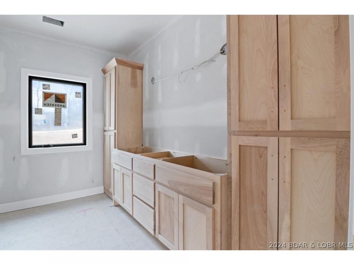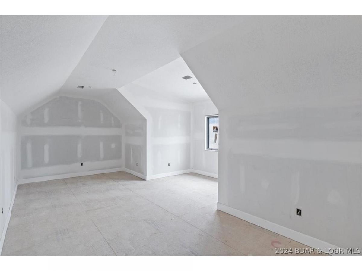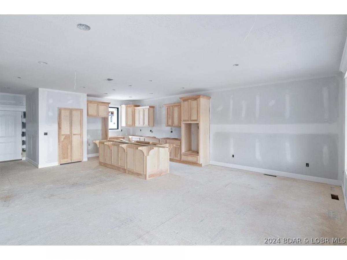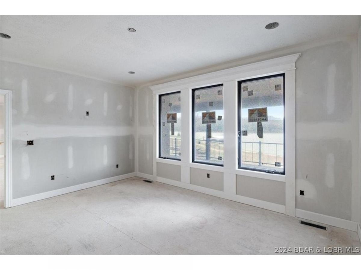 LUXURY NEW CONSTRUCTION Lakefront on the 53 Mile Marker of Lake of the Ozarks! Main level living featuring an open concept layout and lots of upgrades! Custom cabinets in the kitchen, quartz island, walk in pantry, and built in wall oven. Tons of natural light from nearly floor to ceiling black vinyl windows and 4 panel oversized slider door to the full house length covered and screened deck! Crown molding in the main level ensuite with a walk in shower, walk in closet and washer/dryer hookups. The upper level includes a second ensuite, two additional bedrooms, plus a large bonus room over the garage that is perfect for extra sleeping, home office, etc. Downstairs has a second living room, wet bar, another bedroom, and utility with second washer and dryer hookup. Walk out to a covered patio with stamped concrete, an outdoor kitchen, and path leading to the fire pit and dock area that features a NATURAL SANDY BEACH!!! The entire lot is incredibly gentle and perfect for pets, kids, games, lakeside fires and more! Enjoy stunning lake views, calm waters great for swimming and water sports, excellent fishing, and numerous restaurants/bars/gas docks nearby! Completion early Summer 2024.
