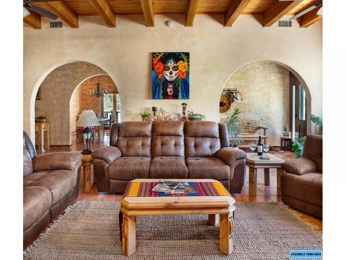 Your Private Paradise! This 61+ acre parcel is end of road and Bordering the GILA NATIONAL FOREST on two sides! If you have longed for peace and quiet in one of the country’s best year-round climates, book your viewing today. Single floor living and accessibility are the main highlights, with guest room privacy upstairs. The very custom 4 bedroom, 4 bath home offers finishing touches/features that are simply over the top: African Mahogony cabinetry, oversized primary bedroom / En Suite, Covered Viewing Decks, Private Office / w Loft, Arched Doorways, Vaulted Beamed Ceilings, 3 Guest Rooms upstairs, privacy balcony upstairs, plus a detached 1780 sq/ft workspace/in-law/outlaw quarters. Enjoy the efficiency, hardly needing a/c in the summers and easy to heat with pellet stoves in the winters. Deer will frequent often and plenty of other southwest wildlife and birds call this refuge home.