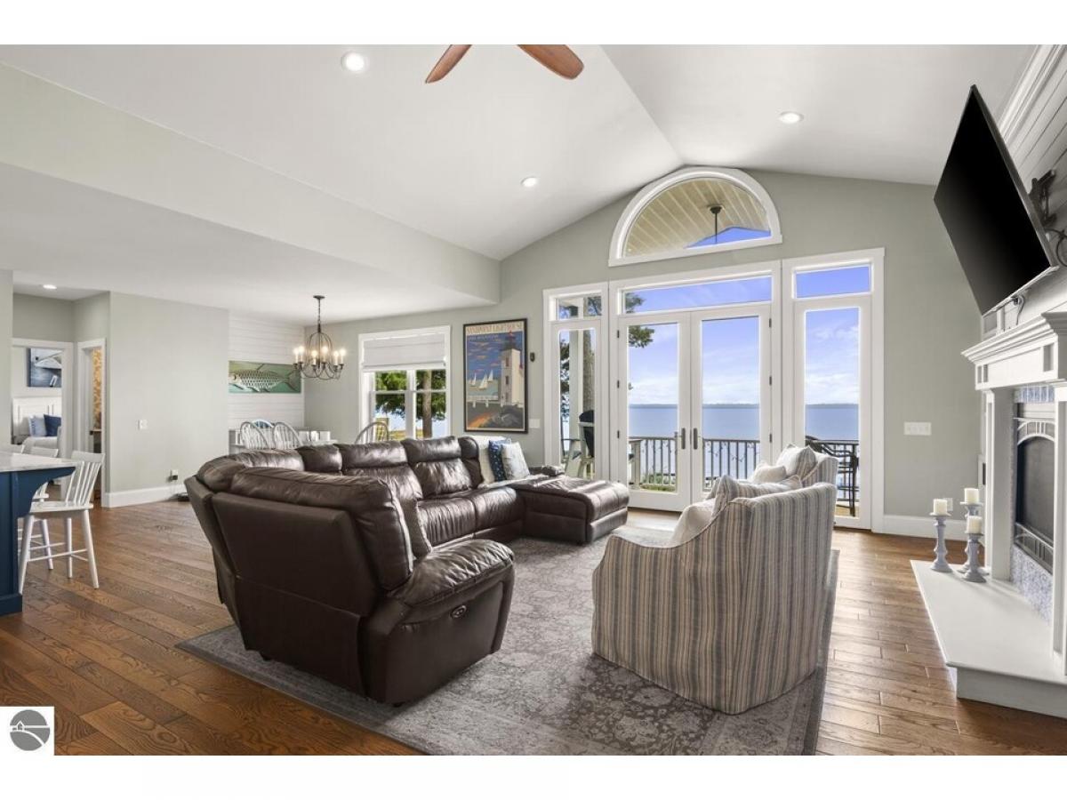 A SUGAR SAND BEACH on Grand Traverse Bay awaits you and your family to enjoy all the best of waterfront living! As you begin your tour of this pristinely maintained home discover an open floor plan with generous sized living spaces; gorgeous views of your private frontage; a natural gas fireplace; a foyer with built-in bench, cubbies & hooks; 5 bedrooms, 4 baths; wake up to the glistening blue waters from the owner’s suite with private bath including heated floors and a solid granite tub! The large kitchen features a spacious island with bar seating, quartz counter tops, beautiful cabinetry, large walk-in pantry and so much more. Custom home gym on the lower level with elevated ceilings including a climbing wall. Spend your evening in the waterside hot tub while enjoying epic sunsets. Outdoor entertaining at its finest with extensive stonework, professional landscaping, large deck, patio, and firepit. Get ready to sit back and listen to the waves lap the shoreline, share stories and find the ultimate place to relax and rejuvenate. Convenient location to explore the quaint waterside towns nearby, with easy access to Elk Rapids, Charlevoix and Traverse City.