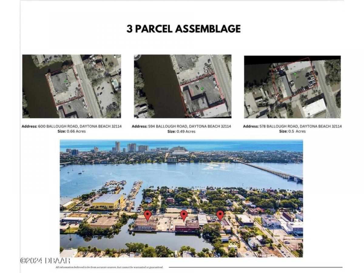 LOCATION, LOCATION, LOCATION!!! 594 Ballough Rd is being sold #039;#039;as is#039;#039; as part of an assemblage sale. MULTIPLE PARCELS READY FOR DEVELOPMENT. Bring all offers!!! Located in the Daytona Design District, which is connected to Downtown Beach Street is undergoing a transformation, and investors are now able to advantage of this opportunity and be a part of how this part of our city takes shape. These lots are part of the Downtown Ballough Road Redevelopment Area Plan, with city grant opportunities for this area. All three parcels are being sold together and include the following parcel ID#039;s. 1. 533805000510 (600 Ballough Rd - 0.66 acres) 2. 533805000480 (594 Ballough Rd - 0.40 acres) 3. 533805000440 (578 Ballough Road - 0.5 acres) This is an incredible opportunity for a visionary developer to revitalize and expand the area into a distinctive vertical mix-used multifamily apartment community. Shops and other retail that will complement businesses along the river. Call L/A for more information and a booklet of the project opportunity.