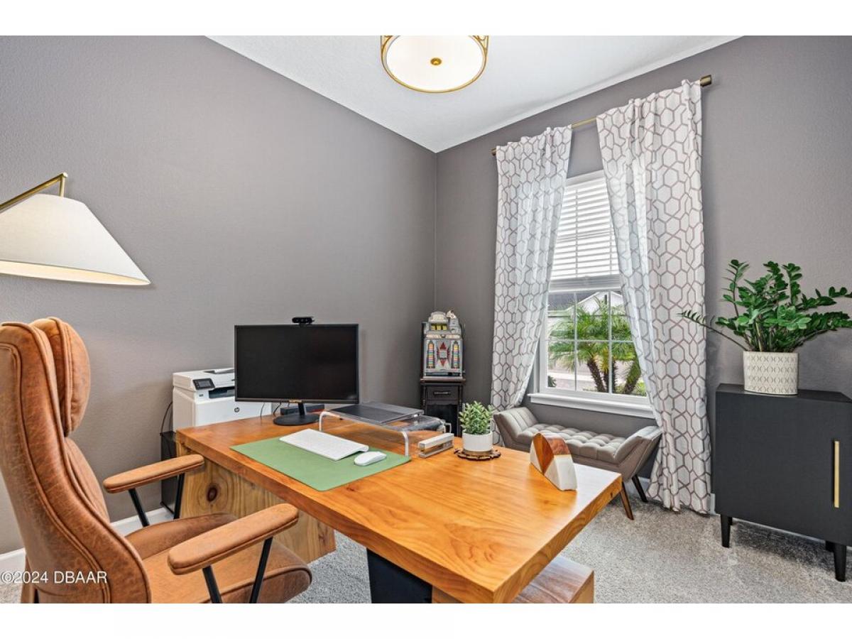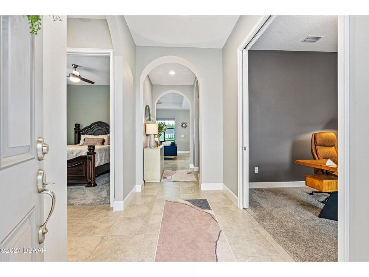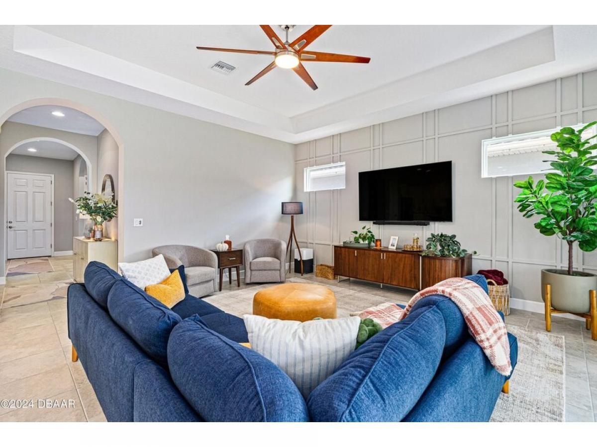 Welcome home! This stunning, meticulously maintained 3-bedroom, 2-bath home with an office, is located in the desired Mosaic community in the heart of Daytona Beach! Perfectly situated on a waterfront lot and a short walk or bike ride from the community amenities, or a short drive from shopping, restaurants, golf, and entertainment. The entry greets you with tile floors that run throughout the living areas of the home and an abundance of natural light. Endless updates throughout, including professionally installed custom molding in the Great Room and Master Suite, trey ceilings, remote blinds, professional landscape, and gutters around the home. The office offers pocket doors and can be used as a flex room or additional bedroom. The Great Room is open to the Kitchen and features beautiful waterfront views. The kitchen is spacious and features an oversized breakfast bar, raised panel cabinetry with lots of storage, stainless-steel appliances, Quartz countertops, stunning glass tile backsplash and an oversized kitchen nook. The Master Suite features dual vanities, walk-in shower, raised panel cabinetry, and a large walk-in closet. Split bedroom floorplan. The screened-in lanai is the perfect place to unwind and relax at the end of the day. Whether you#039;re enjoying a quiet evening with a good book or watching the sunset, it#039;s your own little slide of serenity. As an added bonus, enjoy the Mosaic community lifestyle! This includes Club Mosaic, State of-the-Art Fitness Center, two pools, Bandshell, Kid#039;s playground, and fund on Lake Mosaic and the Boardwalk. A must see! All measurements and information deemed to be accurate but cannot be guaranteed, buyers and realtors are advised to verify.