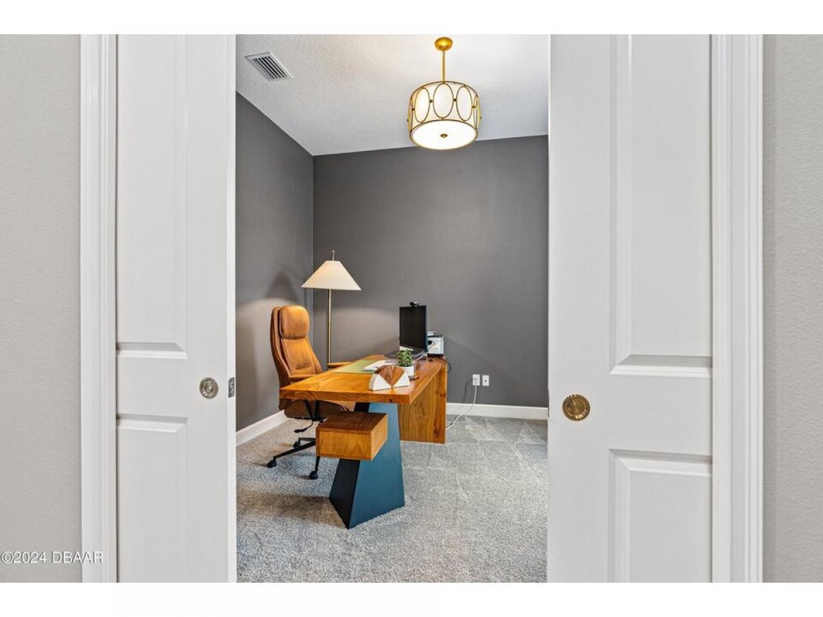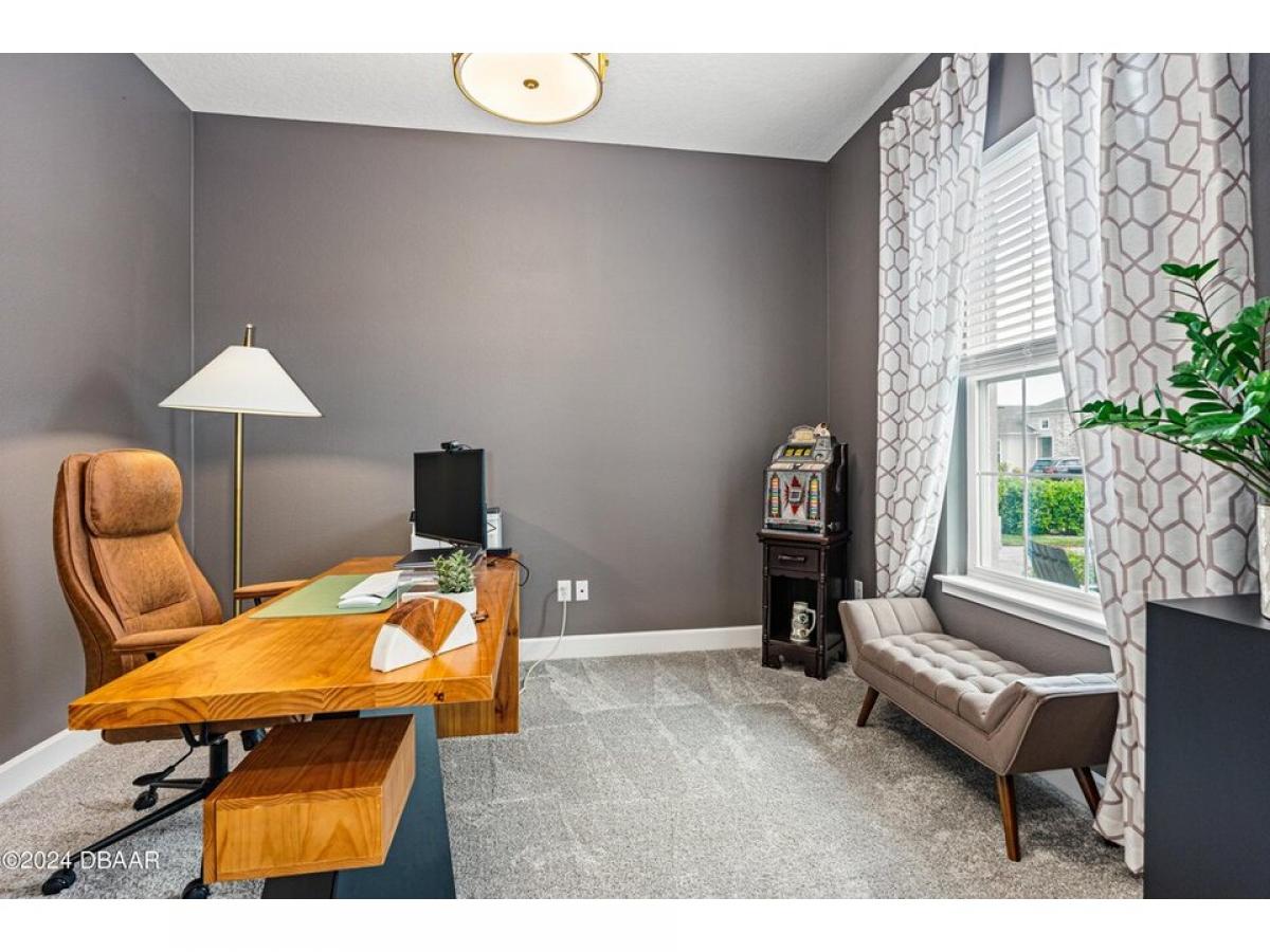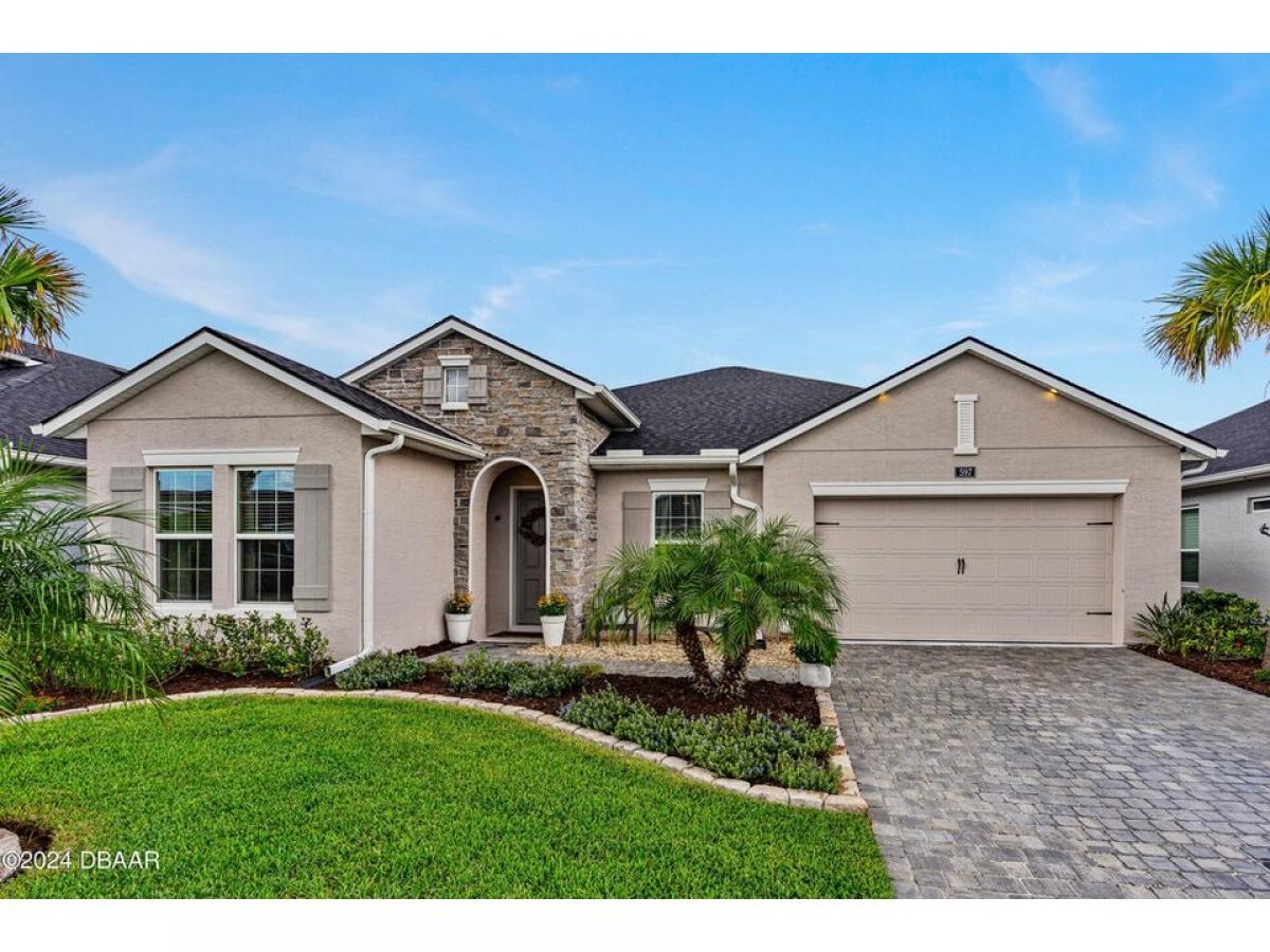 Welcome home! This stunning, meticulously maintained 3-bedroom, 2-bath home with an office, is located in the desired Mosaic community in the heart of Daytona Beach! Perfectly situated on a waterfront lot and a short walk or bike ride from the community amenities, or a short drive from shopping, restaurants, golf, and entertainment. The entry greets you with tile floors that run throughout the living areas of the home and an abundance of natural light. Endless updates throughout, including professionally installed custom molding in the Great Room and Master Suite, trey ceilings, remote blinds, professional landscape, and gutters around the home. The office offers pocket doors and can be used as a flex room or additional bedroom. The Great Room is open to the Kitchen and features beautiful waterfront views. The kitchen is spacious and features an oversized breakfast bar, raised panel cabinetry with lots of storage, stainless-steel appliances, Quartz countertops, stunning glass tile backsplash and an oversized kitchen nook. The Master Suite features dual vanities, walk-in shower, raised panel cabinetry, and a large walk-in closet. Split bedroom floorplan. The screened-in lanai is the perfect place to unwind and relax at the end of the day. Whether you#039;re enjoying a quiet evening with a good book or watching the sunset, it#039;s your own little slide of serenity. As an added bonus, enjoy the Mosaic community lifestyle! This includes Club Mosaic, State of-the-Art Fitness Center, two pools, Bandshell, Kid#039;s playground, and fund on Lake Mosaic and the Boardwalk. A must see! All measurements and information deemed to be accurate but cannot be guaranteed, buyers and realtors are advised to verify.
