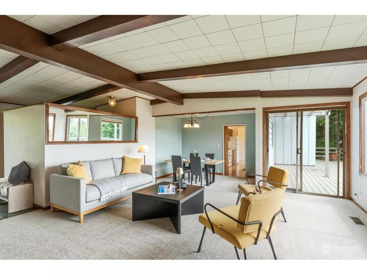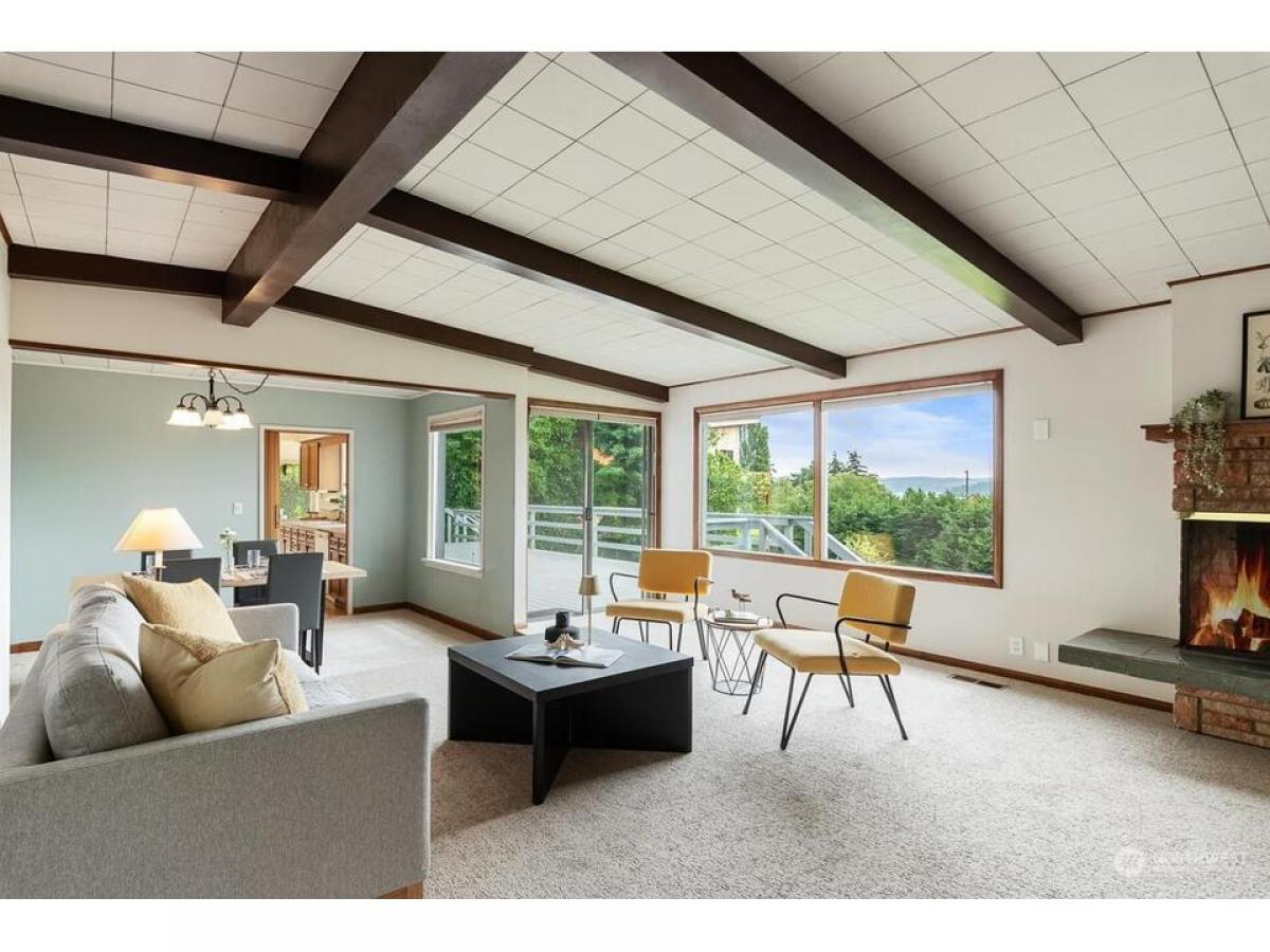 Cool vibe mid-century style home bursting with character and potential! Enjoy stunning southeast views overlooking the bay and distant mountains. The main level features an open living room and dining area, wood stone surround fireplace and galley kitchen with walk-in pantry breakfast nook. The primary bedroom offers view picture window attached bath, plus two additional bedrooms and full bath on main. Relax on the expansive deck with backyard access. The lower level includes laundry/mudroom with door out to backyard, flex space with storage plus a bathroom a large yard perfect for entertainment, play, gardening and fruit trees. Moments from Deception Pass State Park, Shrimp Shack and easy access to Hwy 20 to NAS Whidbey or Anacortes!