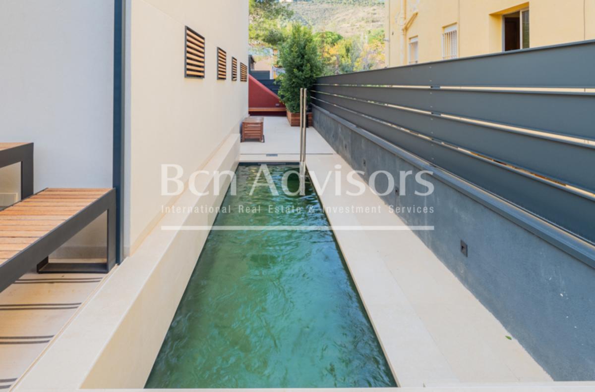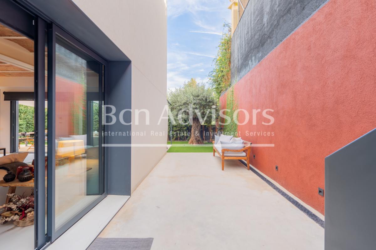 This outstanding house has been totally refurbished with a deed of declaration of new construction. It's located at the foothills of the natural park of Collserola, in the upper part of the Sarria neighbourhood. It's near the prestigious Benjamin Franklin International School and other private educational centres, and close to the Ronda de Dalt, which guarantees a perfect connection with this road in and out of the city.The house has 222 built interior sqm and 166 exterior sqm, distributed in 3 floors with an interior elevator with capacity for 4 people. It has the highest quality materials and finishings, with restored original elements such as Catalan vaulted ceilings and wooden beams, as well as exposed brick walls.