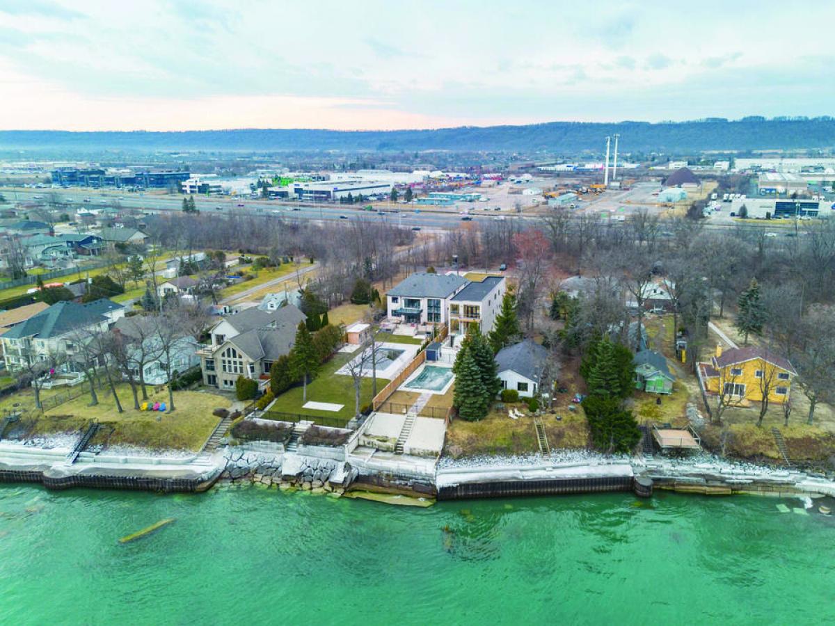 A RARE FIND! NEWLY BUILT MODERN CONTEMPORARY LUXURY HOME ON A PREMIUM 40 X 427 DEEP WATERFRONT LOT OASIS FEATURING OVER 4700SF OF LIVING SPACE IN PRIME WATERFRONT COMMUNITY + FINANCING INCENTIVE AVAILABLE FOR QUALIFIED BUYER. Built in 2022, this remarkable home showcases beautiful craftsmanship throughout, w/10' ceilings on the main level, led pot lights, elegant engineered hardwood floors, and a stunning open concept floor plan that seamlessly blends all the living areas together. Expansive windows bring the outdoors in w/ unobstructed views of the water. Chef's gourmet kitchen designed w/ high-end JennAir appliances anchors this home and fts quartz countertops and ample upper and lower cabinetry space. Charming living room w/ a gas fireplace creates the perfect ambiance to sit around and catch up with loved ones. Step into your primary bedroom above designed w/ a lg walk-in closet, 5pc ensuite and direct access to your private balcony overlooking the tranquil Lake and its soothing sounds. 4 more bedrooms down the hall w/ ensuites. 9' ceilings on 2nd lvl! The lower level w/ walk-up fts 2 more bedrooms, a full size kitchen, a dining area, a 3pc bath & a rec room w/ electric fireplace. Great for multi-generational living or investment purposes! Spacious backyard w/ inground pool and ample seating areas to entertain! Mins to Downtown Burlington & Niagara Region, Marinas, Trails, Shops, Schools, Major Highways & More. Truly a Must See! All existing electrical light fixtures, JennAir wall oven, range, dishwasher, beverage fridge, rangehood, Samsung fridge, dishwasher, stove, microwave, fireplace, washer and dryer.