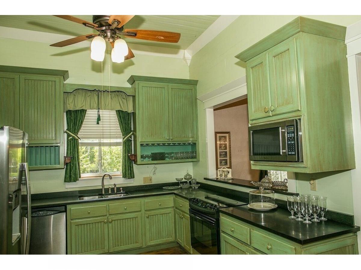 Lovely Folk Victorian built in 1885 close to downtown! This home has alot of original charm with long leaf pine floors, bead board, original antique hardware and 11 ?? high ceilings. A wonderful central hall welcomes you in from the front porch. Living room has a lovely stacked rock fireplace and leads into the dining room and from there the kitchen. Kitchen was remodeled with custom cabinetry and granite countertops. Bedrooms are spacious with great natural light. The primary bedroom has full bathroom with tile walk in shower and large closet. Guest bathroom with claw foot tub can be accessed off the central hall or through the hall on way to the 3rd bedroom. The back yard is peaceful and serene spot with a lovely wrap around porch, plush yard with soothing water fountain and greenhouse with irrigation and electricity. The rebuilt detached 1 car garage is connected to the back porch with covered walkway and has craft room upstairs that could easily convert into guest quarters. Roof replaced in 2016.