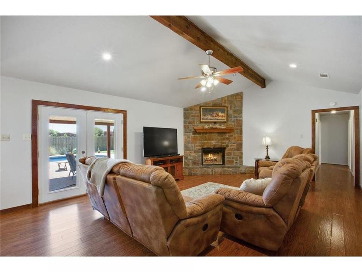 Over 1700 sqft, 3 BR, 2 BA, spacious LR w/stone FP & laminate wood flooring. Giant master suite w/built in entertainment center, dual vanities, & a walk-in shower. Covered patio & stunning pool. The backyard features a large storage shed and a box drain.