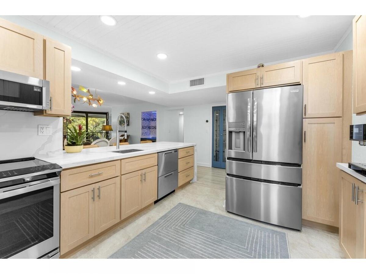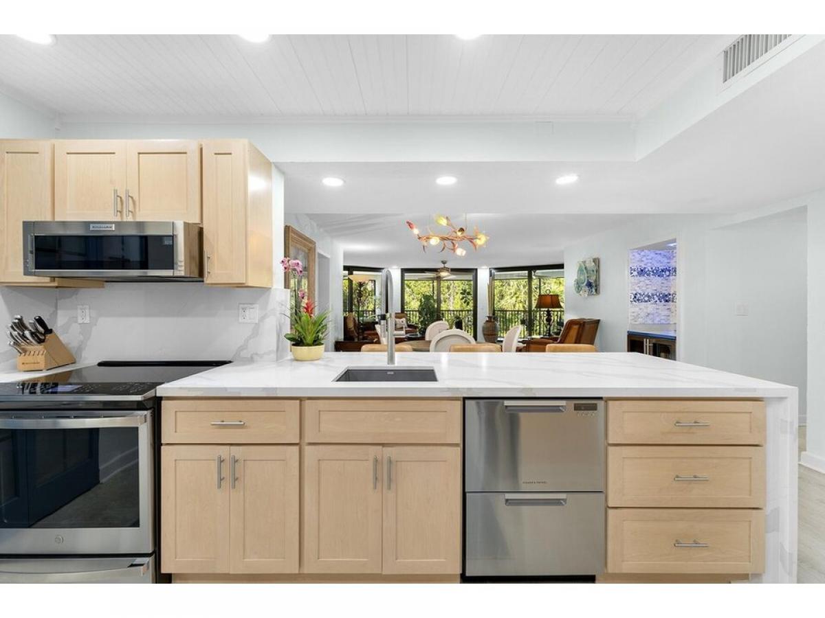 Be prepared to fall in love with Seawatch in Marathon. Featuring 48 units situated on 17 lush acres of manicured grounds, this community is ideal for those who enjoy seclusion and amenities galore. Recently completing Florida#039;s required Milestone Inspection with Reserve Study almost finalized, relax at Unit 104 in Building 6 that features two bedrooms plus a bonus room (used as an office) and two updated bathrooms. Feel one with nature amidst views of the natural hammock and peek-a-boo views of the on-site marina. Step into the stunning Chef#039;s kitchen featuring Carrera quartz countertops and backsplash with a modern, waterfall edged peninsula, white-oak cabinets, and all new appliances including two dishwasher drawers. Find updated #039;#039;ocean blue#039;#039; interior and closet doors with glass paneling. Open the new impact sliders to enjoy a true indoor-outdoor space and plant sanctuary amidst the 400 square foot screened-in porch. Master bathroom is complete with a marble topped double vanity and new glass shower enclosure. Custom shelving in the master closet too. Contemporary guest bathroom with custom tile flooring and walls, opaque glass and black hardware shower enclosure, glass sink, and Carrera quartz topped vanity. With an additional bonus room that would easily convert into a third bedroom, enjoy room for all. If that is not enough, stay active at the tennis amp; pickleball courts or workout at the on-site gym. Relax by the brand new million-dollar pool and spa. Store your vessel, boat trailer, or even golf cart in the storage barn with 35-foot tall ceilings. Grill out at the on-site pool cabana or host gatherings at the clubhouse. With all of these amenities, you#039;ll never want to leave... but if you do, enjoy immediate access to the Gulf or Ocean through Vaca-Cut from the on-site marina (boat slips for rent). With the conveniences of Marathon#039;s private airport, grocery stores, and restaurants nearby, this is the way to enjoy the finer things in the Florida Keys!