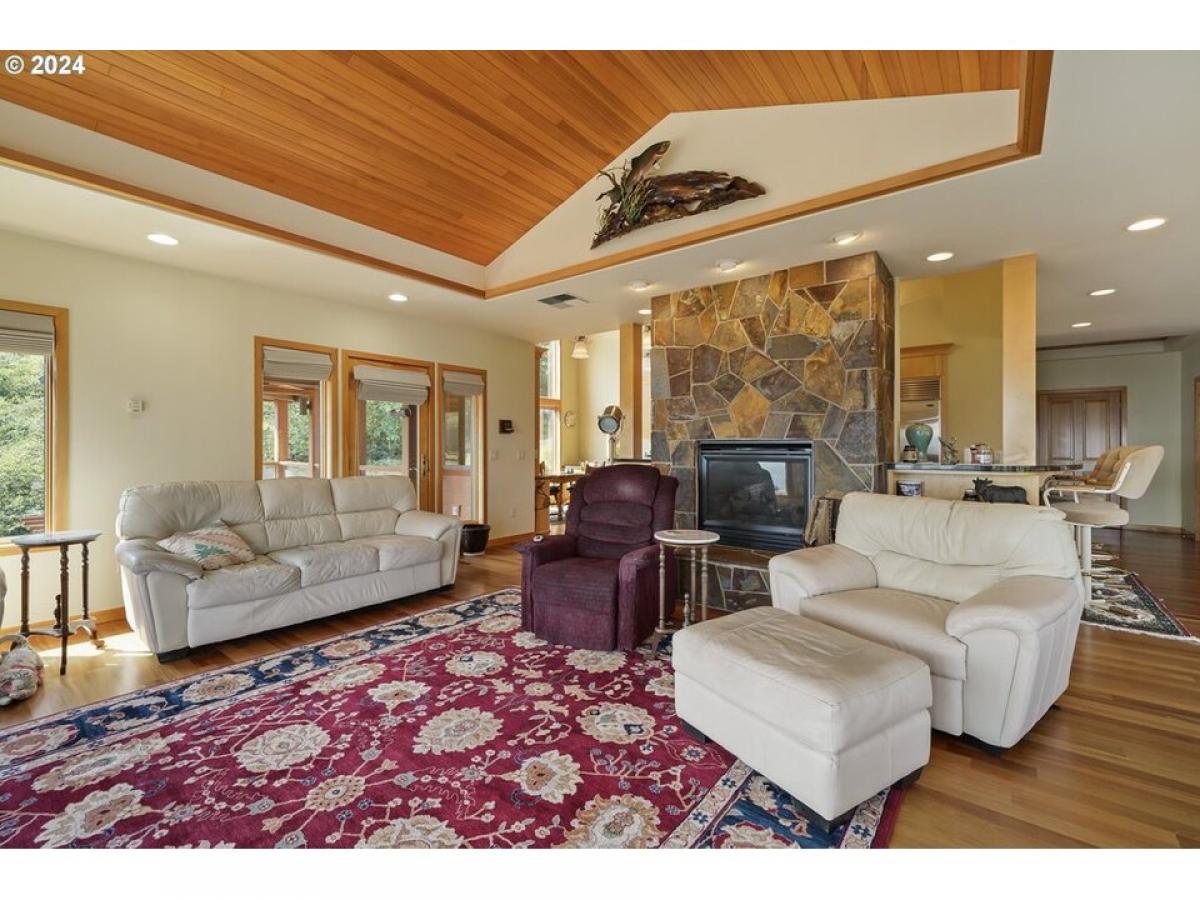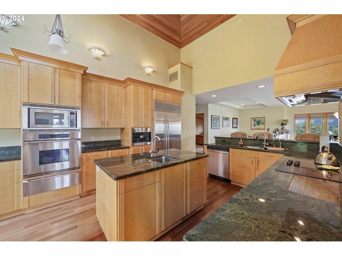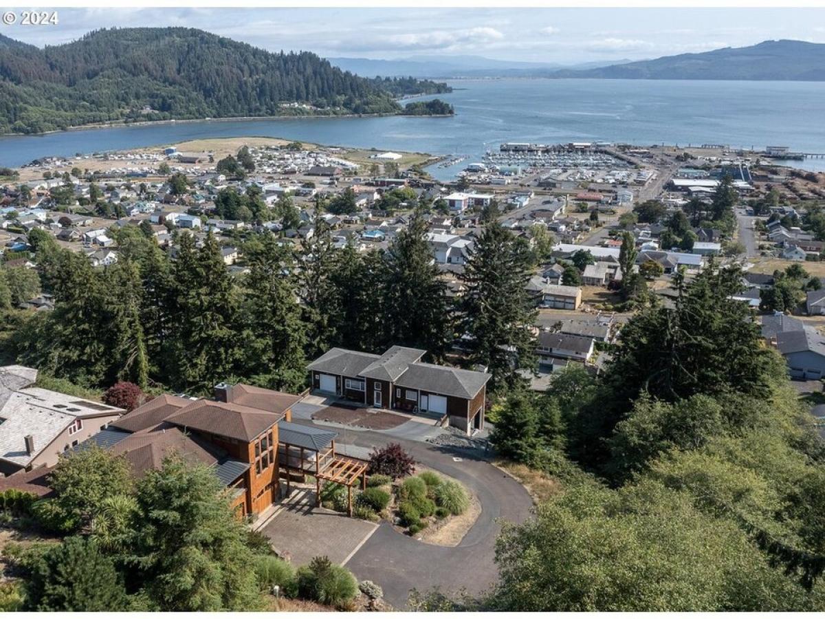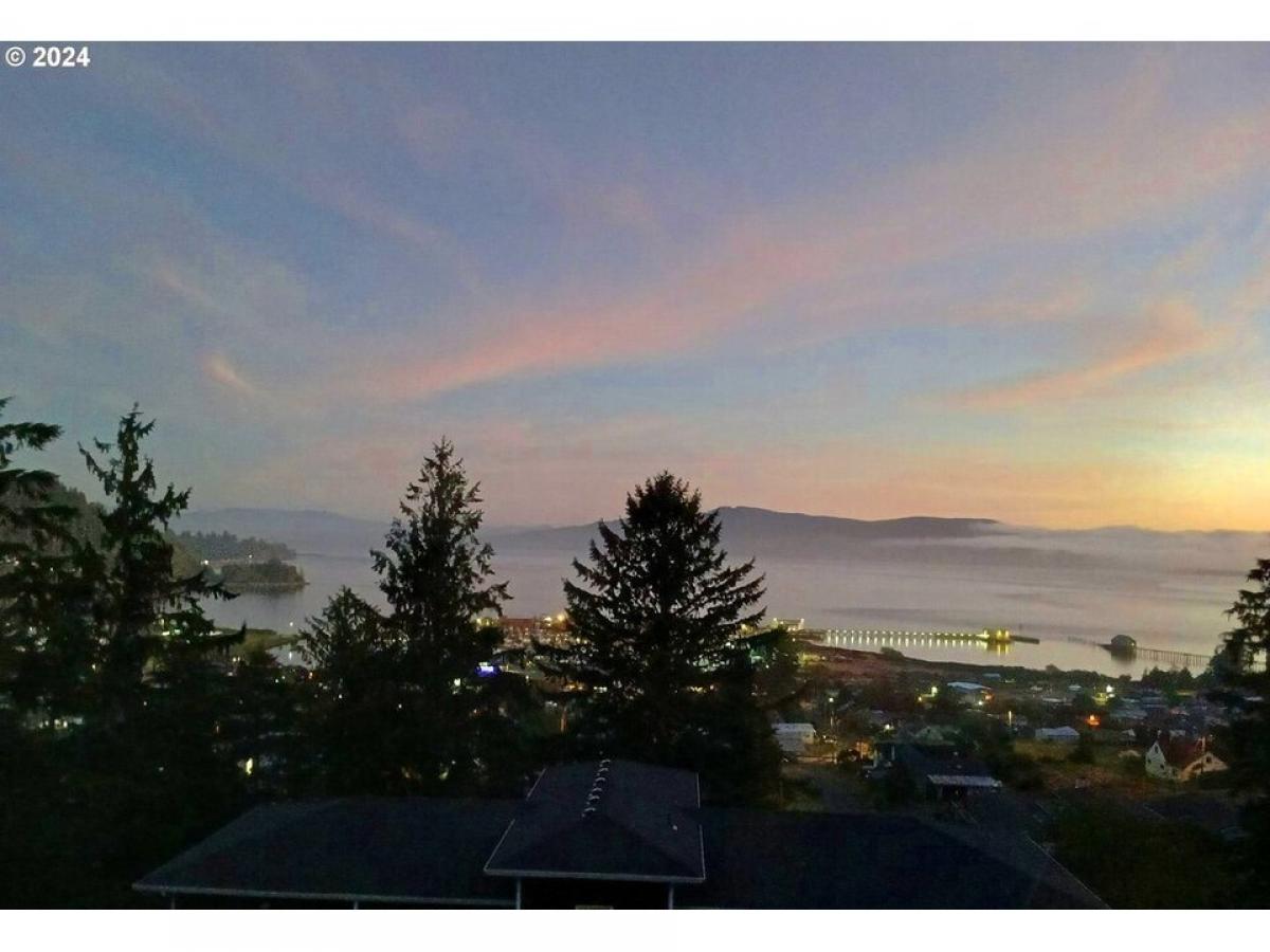 EXQUISITE CUSTOM CRAFTSMAN built like a fortress. Billion dollar view incl Bay, ocean, offshore rocks, Bayocean peninsula, Miami Cove, marina, islands, mountains, city lights at night. Imported woodwork, custom carved cherry stair rail, cherry floors, clear cedar lined trayed ceiling with lighted soffits, Montana Flagstone slate frplc amp; retaining walls. Entry level living plus elevator. New roof! Theater/projection room amp; family room down. Massive showers amp; closets amp; storage. Jackamp;Jill Primary Bdrm suite.