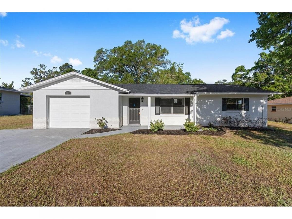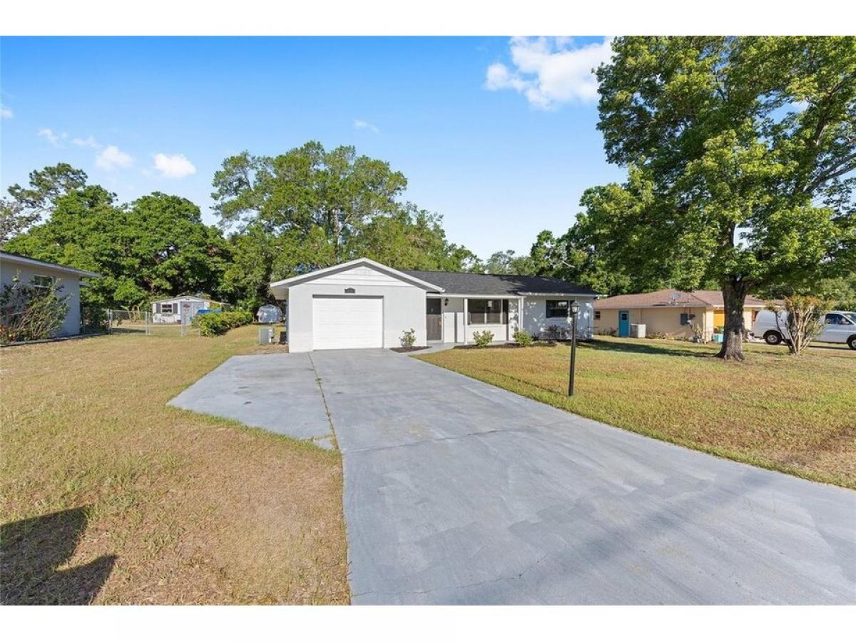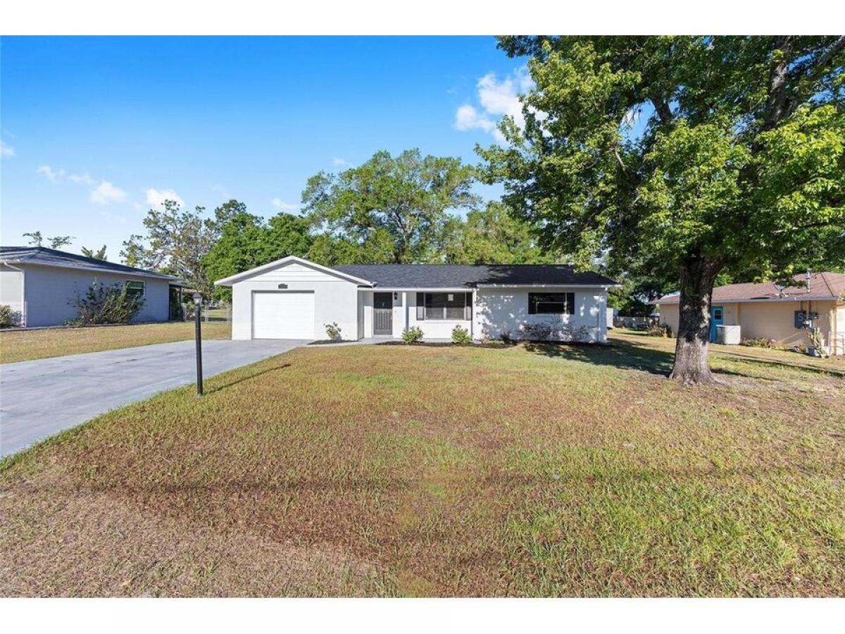 Welcome to this beautifully renovated 2-bedroom, 2-bathroom home with no HOA, situated on a spacious .31-acre lot! The kitchen has been recently updated with new counter-tops and appliances, and the home features stylish new vinyl plank flooring throughout. Both bedrooms have their own en-suite bathrooms for added privacy and comfort. Enjoy relaxing on the screened lanai, and take advantage of the brand-new roof and fresh interior and exterior paint. A convenient shed is included, perfect for extra storage. Plus, this home is ideally located near The Villages for shopping and dining!