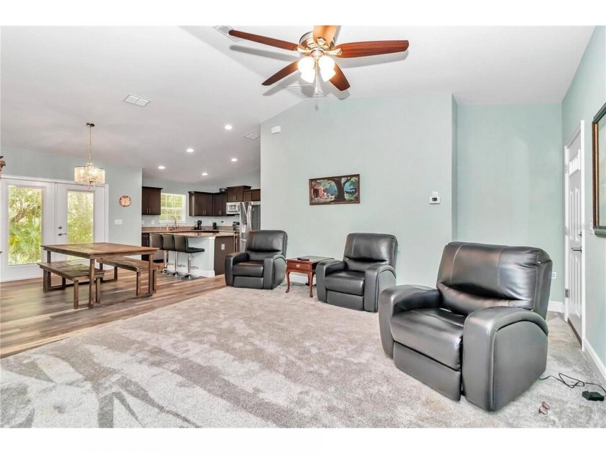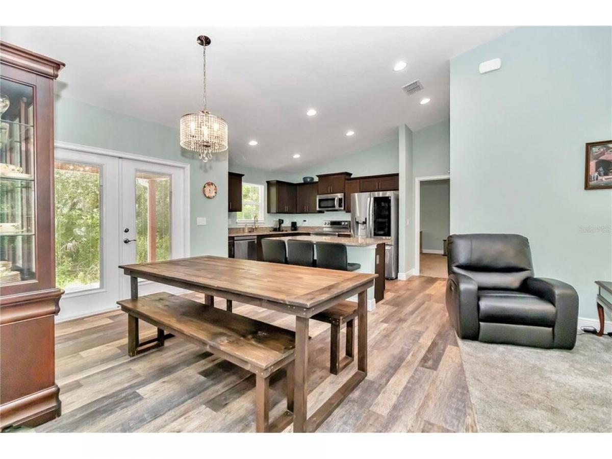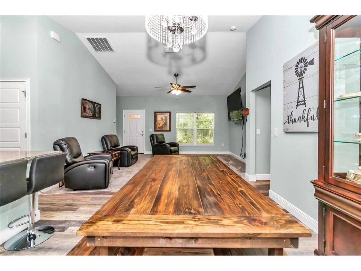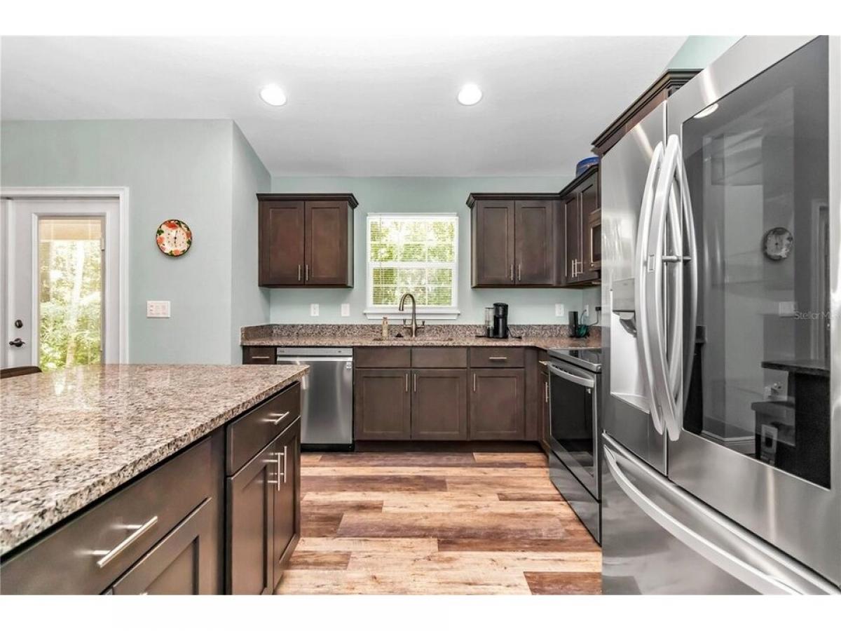 ALMOST 1 ACRE LOT (.93) OF SERENITY IN THE FORGOTTEN TOWN OF MCINTOSH IN NORTH MARION COUNTY! THIS 2022 CUSTOM BUILT HOME IS SURROUNDED BY PRIVACY WITH SIDE ENTRY GARAGE. YOUR MORNINGS ARE PERFECTION FROM YOUR FRONT PORCH, ENTER INTO THE FRONT DOOR AND BE GREETED BY SPACIOUS, OPEN FLOOR PLAN WITH VAULTED CEILINGS AND CUSTOM LIGHTING. THE LIVING ROOM IS LARGE AND OVERLOOKS BOTH THE DINING AREA AND KITCHEN. THE KITCHEN HAS STAINLESS STEEL APPLIANCES, GRANITE COUNTERTOPS AND A LARGE ISLAND WITH PLENTY OF ROOM YOUR BARSTOOLS. THIS IS A SPLIT BEDROOM PLAN WITH THE PRIMARY ON RIGHT HAND SIDE OF HOME AND PRIMARY BATH FEATURING DOUBLE, 42 INCH GRANITE VANITY, CARRERA MARBLE JACUZZI TUB EQUIPPED WITH GRAB BAR , AND SEAMLESS GLASS DOOR SHOWER WITH TILE SURROUND. BACK TOWARDS MAIN LIVING YOUR WILL FIND THE INSIDE LAUNDRY AREA THAT LEADS TO THE 2 CAR GARAGE. ACROSS THE HOME IS THE 2 ADDITIONAL BEDROOMS THAT SHARE THE 2ND BATH OFFERING 42 INCH GRANITE TOP VANITY AND COMBO TUB SHOWER. BACK TO THE DINING AREA THE FRENCH DOORS LEADS TO COVERED LANAI WITH VIEWS OF THE PRIVATE WOODED LOT. ALL CLOSE TO GAINESVILLE, ORANGE LAKE FOR INCREDIBLE FISHING AND BOATING!