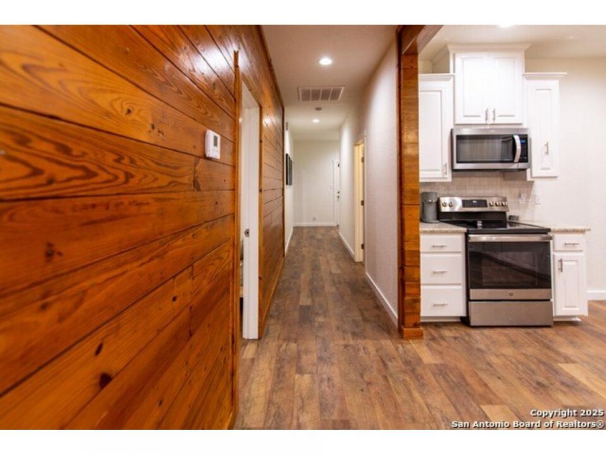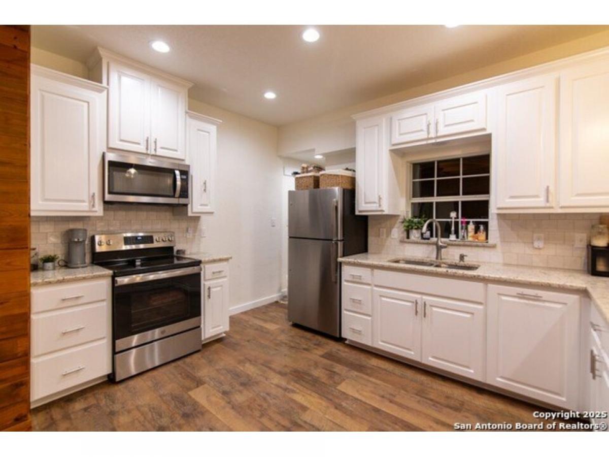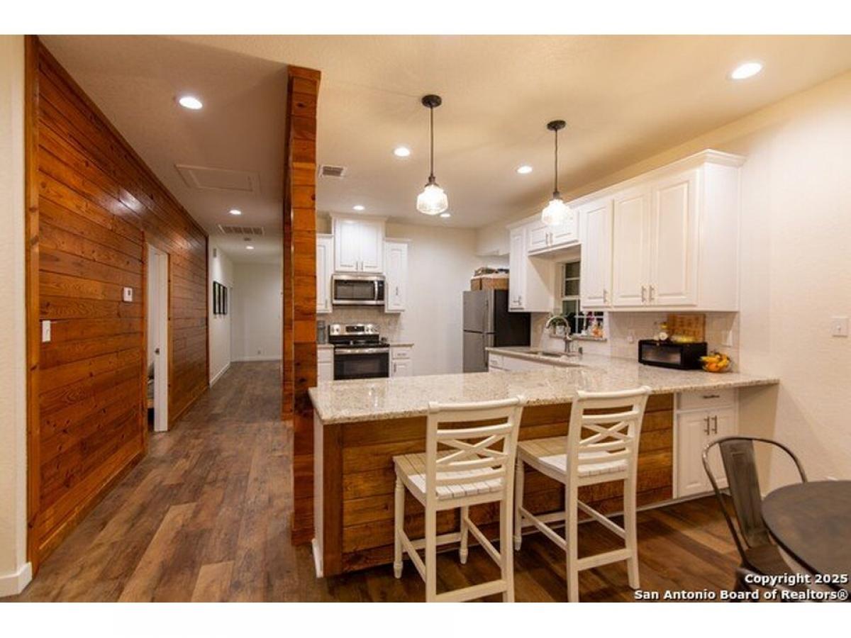 Step into timeless charm with this beautifully remodeled historic home in the heart of downtown Karnes City! This 3-bedroom, 2-bathroom gem offers approximately 1,200 square feet (+/-) of thoughtfully updated living space, blending vintage character with modern comforts. Enjoy mornings on the inviting front porch or unwind in the fully privacy-fenced backyard and covered side patio - perfect for relaxing or entertaining. Inside, you#039;ll find a spacious laundry room tucked behind a sliding antique door, a built-in pantry concealed behind another stunning antique door, and a hallway highlighted by a striking stained shiplap accent wall. The two hall bedrooms feature built in dressers with solid counter tops and closets with sliding doors. The primary suite is a true retreat, featuring a luxurious walk-in shower, a generous walk-in closet hidden behind yet another beautiful antique door, and stylish finishes throughout. With updated light fixtures, recessed can lights, and under-cabinet lighting, every corner of this home shines. Fully remodeled in 2023, this downtown treasure is move-in ready and waiting for you. Don#039;t miss your chance - schedule your private tour today!