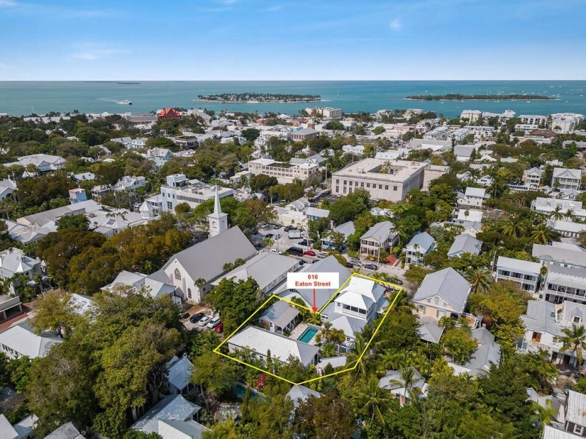 Nestled in the heart of Key West#039;s historic district, 616 Eaton Street is a testament to quality, timeless beauty, and refined living. This single-family residence was constructed in 1911 and painstakingly renovated and reimagined over the last few years culminating in 2024 with the spectacular like new home. Most hidden from the Street, it exudes classic Key West architecture blended with modern elegant designs. With 5 bedrooms, 5 full baths amp; 2 half baths, the home spans 4,000sf on a large 12,478sf lot. The 2-story primary home contains the living room, dining room, kitchen, 2 office spaces/dens, one of which could be a bedroom if desired, 2 half baths on the living level amp; a spectacular 2nd floor primary suite with office/ laundry amp; an enormous outside covered deck for private lounging. Thoughtful renovations include a stunning glass wall that opens between the outdoor dining pavilion amp; the top of the line kitchen w/ functional pass-through windows from the kitchen to the pool area. Reclaimed hardwood floors amp; tall ceilings ensure a perfect balance of historical character amp; contemporary functionality. The substantial living area, accented by natural light, offers a warm amp; inviting atmosphere amp; the gorgeous central pool w/ a water feature creates a stunning outdoor oasis amp; is perfect for entertaining. Surrounding the pool amp; outdoor dining pavilion are 2 phenomenal guest houses, housing a total of 4BD/4BA plus a full 1,512sf attic w/ staircase that is built for storage. Lots of off-street parking is offered along w/ a carport amp; small garage. Everything is new, from the hard wood floors amp; bathrooms to the salt generated heated pool amp; generator. This property is a rare offering that combines historical significance, luxurious living amp; an unbeatable location in one of Key West#039;s most coveted neighborhoods. Located in the X flood zone just 2 blocks from both Duval St. amp; the Historic Seaport, it is walkable to all the wonderful restaurants, galleries amp; shops.