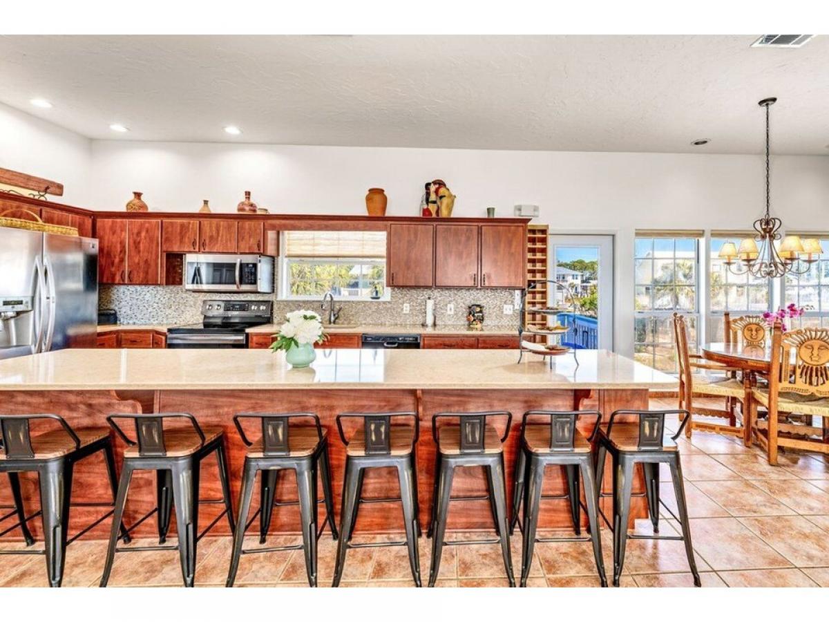 Charming First-Tier Beach Home with Gulf Views amp; Private Pool! Welcome to your St. George Island retreat! This beautifully maintained 4-bedroom, 2-bathroom first-tier home offers stunning Gulf views, a private in-ground pool with a sail shade, and unique coastal charm. Step onto the expansive front porch and soak in the Gulf breeze before heading inside to a bright, open living space. The gourmet kitchen features quartz countertops, a large island, and ample storage, perfect for entertaining. A wet bar with an ornate sink adds an elegant touch. The built-in bookcase and wine storage offer both style and function. Each bedroom has beautiful wood floors, a private exterior entrance, and plenty of natural light. The home also includes a new roof, ensuring peace of mind for years to come. Outside, enjoy your private pool oasis or take a short stroll to the beach. With ample storage throughout, this home is ideal for a vacation getaway, rental investment, or full-time island living.