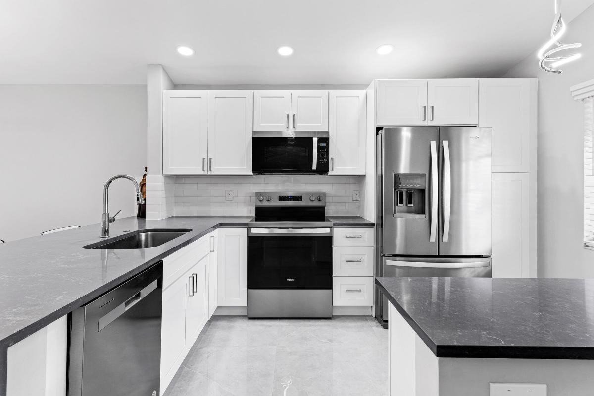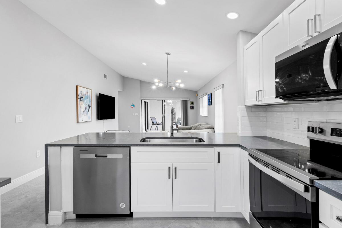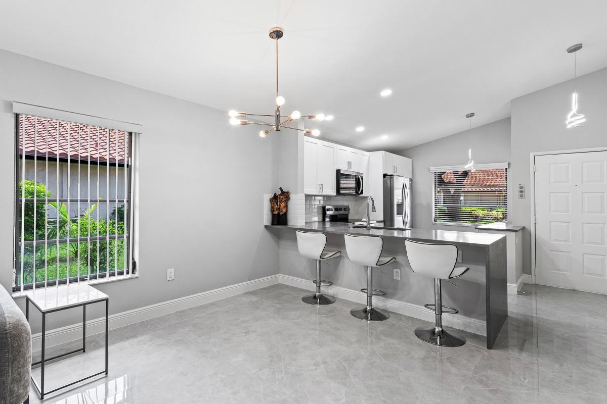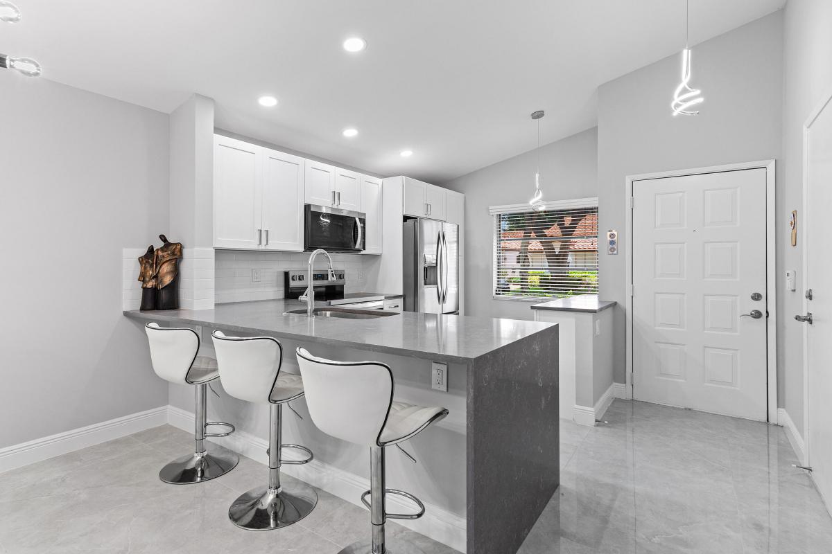 Stunning, Fully Renovated Villa in Huntington Pointe. Beautifully updated 2-bedroom, 2-bathroom villa + Garage located in the sought-after 55+ gated community of Huntington Pointe. This move-in-ready home features a spacious, open-concept eat-in kitchen with elegant quartz countertops and all-new wood cabinetry. Complemented by brand-new stainless steel appliances, including a glass-top stove, refrigerator, dishwasher, microwave, washer, and dryer. Luxurious 32'' porcelain tile throughout the villa, recessed lighting enhances in kitchen and living areas. Both bathrooms have been completely remodeled and now feature stylish walk-in showers with high-end finishes. Fully enclosed Florida room under air, with access to a private side yard--perfect for quiet relaxation or entertaining.Huntington Pointe offers resort-style living with a recently redesigned 53,000-square-foot clubhouse, complete with a 600-seat theater showcasing year-round movies and live performances. Residents enjoy an indoor heated pool, four outdoor heated pools with hot tubs, a state-of-the-art fitness center, billiards, aerobics and card rooms, a ping-pong room, bocce, pickleball, and tennis courts.A full calendar of clubs and organized activities keeps the community vibrant and engaging. The on-site café serves breakfast and lunch daily for your convenience.This is Florida living at its finestschedule your private tour today.