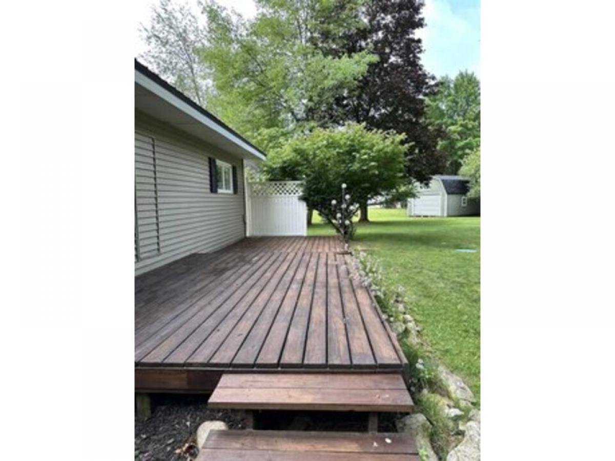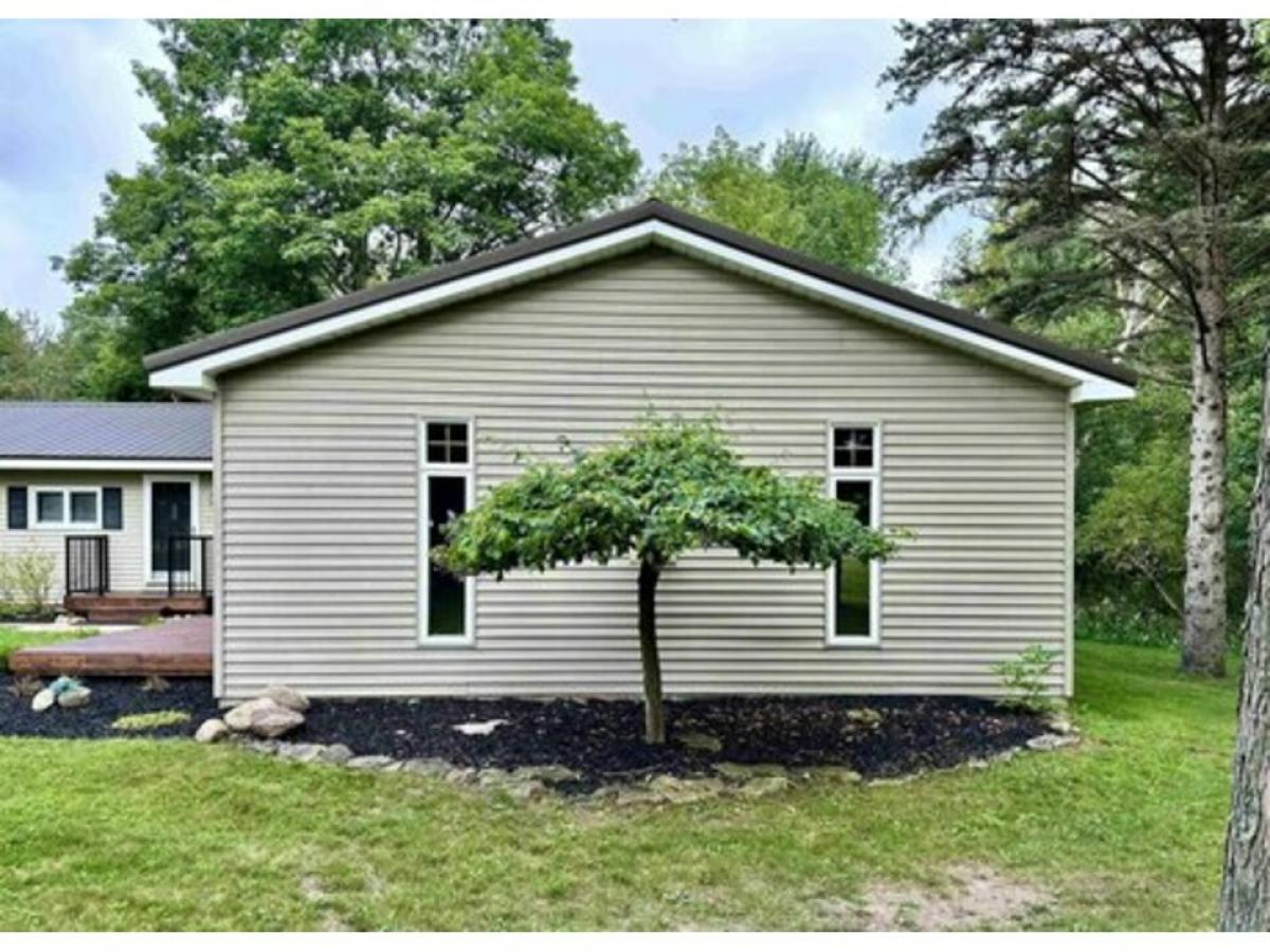 To say this home has been immaculately maintained would probably be an understatement and it offers a little something for everyone. The list is long and the space is small, so here we go. Located 10 minutes from Clare, on a paved dead end road (think peace and quite) with natural gas, cable and situated on the Tobacco River. Some of the more recent updates include a metal roof, furnace and a/c unit as well as the front yard deck. There are 2 back decks, one accessed from the dining room and the other a smaller private deck accessed from the primary bedroom. Family room has vaulted ceilings, natural gas fireplace and access to the front deck. Down near the water you'll find a 14x36 shed with an overhead door on one end and a small finished room on the other end with a covered deck overlooking the river. It's a great place for the kids/grand kids to go play! Rounding this out is some gorgeous landscaping and a nice level area at the river complete with a fire pit for those evenings you'll be entertaining or relaxing just listing to the quiet babble of the water flowing by.