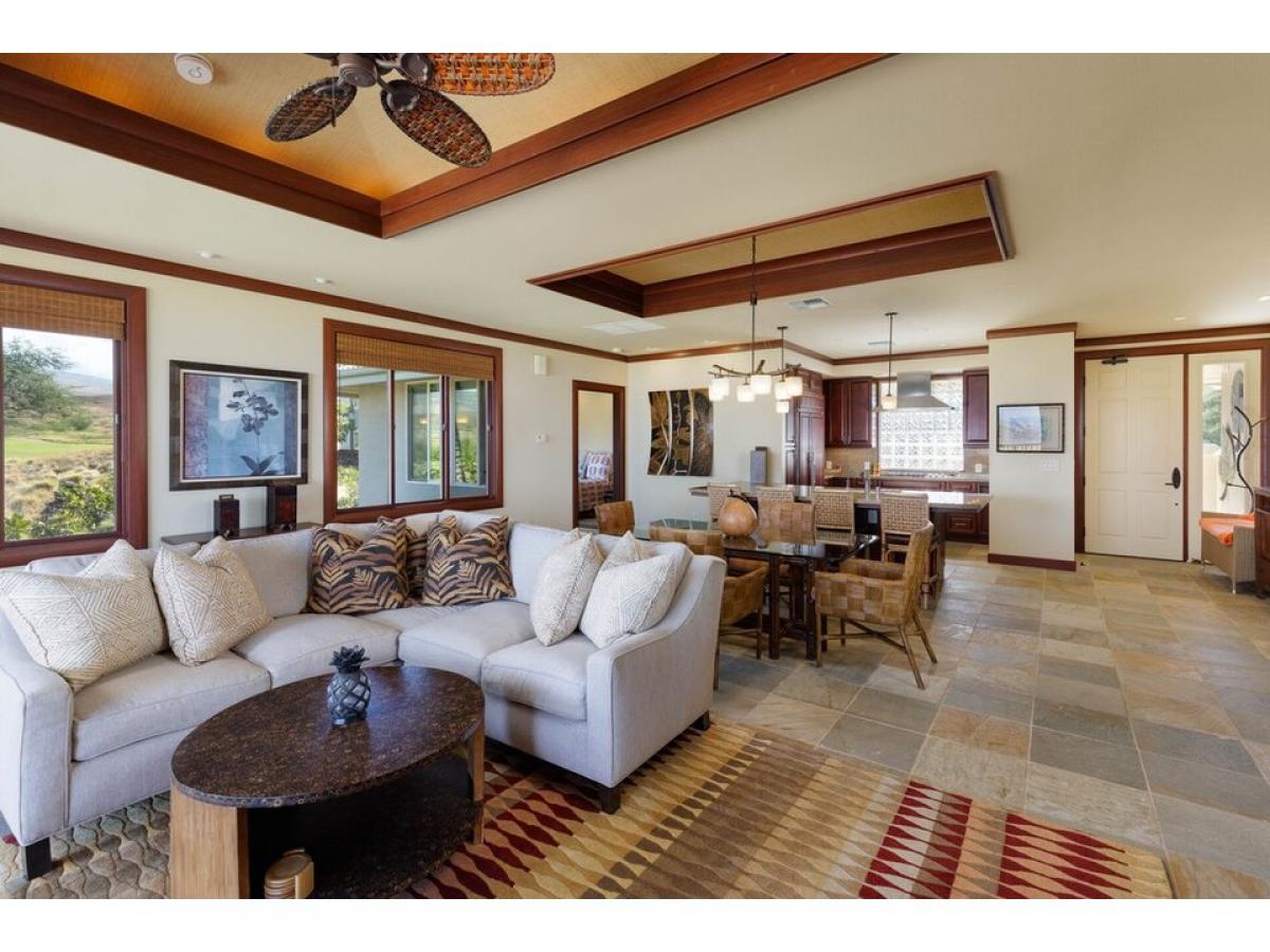 Discover a home that combines privacy, elegance, magnificent views of the ocean amp; Hapuna golf course and the essence of island paradisemdash;all at the Ridge K-202 at Wai?ula?ula. This spacious and exquisitely designed 3 bedroom 3 bathroom condo is nestled within the prestigious Mauna Kea Resort. The entrance of the unit, located upstairs, is enhanced by tropical leaves wall art and leads into comfort and openness. You are immediately greeted by awe-inspiring views that stretch across this nearly 2,111-sqft residence, offering a captivating sense of privacy amp; serenity. Vaulted ceilings amp; Hawaiian weave ceiling treatment in the great room and bedrooms amplify the sweeping and unobstructed views, allowing natural light to flow freely throughout the home. Natural stone flooring at entry, kitchen and baths connect the spaces, creating a seamless and inviting layout. The gourmet kitchen with cherry wood cabinetry, a large island for casual sitting, granite countertops and stainless steel appliances, leads into a thoughtfully designed dining/living area. This serene living space has access to ocean, golf course and mountain views that widen from the spacious lanai. The 8rsquo;sliding pocket doors give unrestricted access between indoors and outdoors. The large lanai invites you to relax amp; savor breathtaking views. It features a granite wet bar with sink and SubZero refrigerator and BBQ.This condorsquo;s configuration three-bedroom three bathroom with dual master suites delivers comfort amp; privacy. Dual master suites provide a retreat-like experience with coffered ceilings, luxurious soaking tubs, amp; spacious walk-in showers, while a third bedroom offers versatility for guests or additional living space.This exquisite luxury condo has been impeccably maintained amp; is in great condition. As a second home, it has been rarely used amp; never rented. Perfect for discerning buyers seeking for best views, exclusivity and quality.